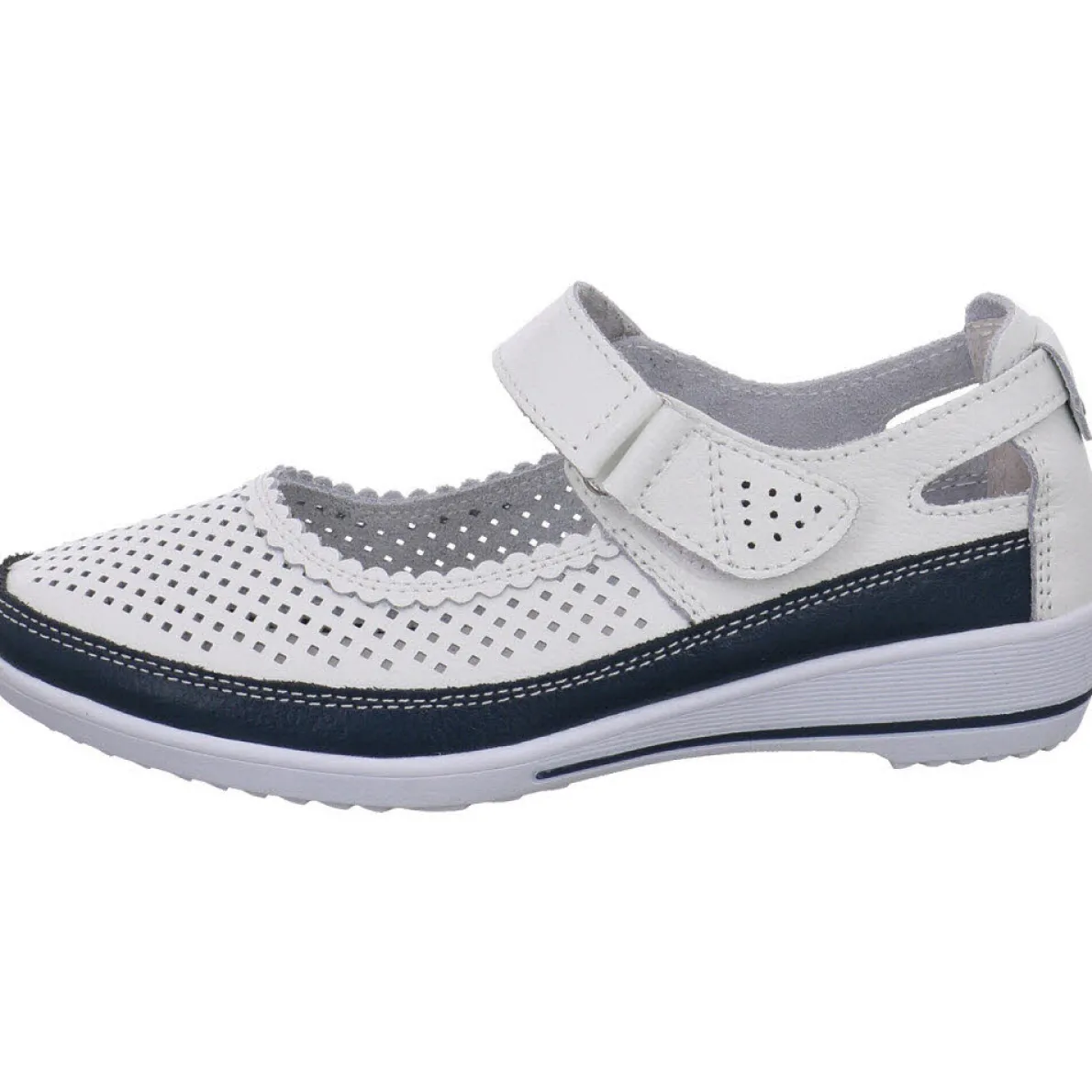 Er wurde aus Echtleder in Weiß und Blau gefertigt und mit tollen Cutouts versehen. Das offen gestaltete Design sorgt für eine optimale Luftzirkulation.