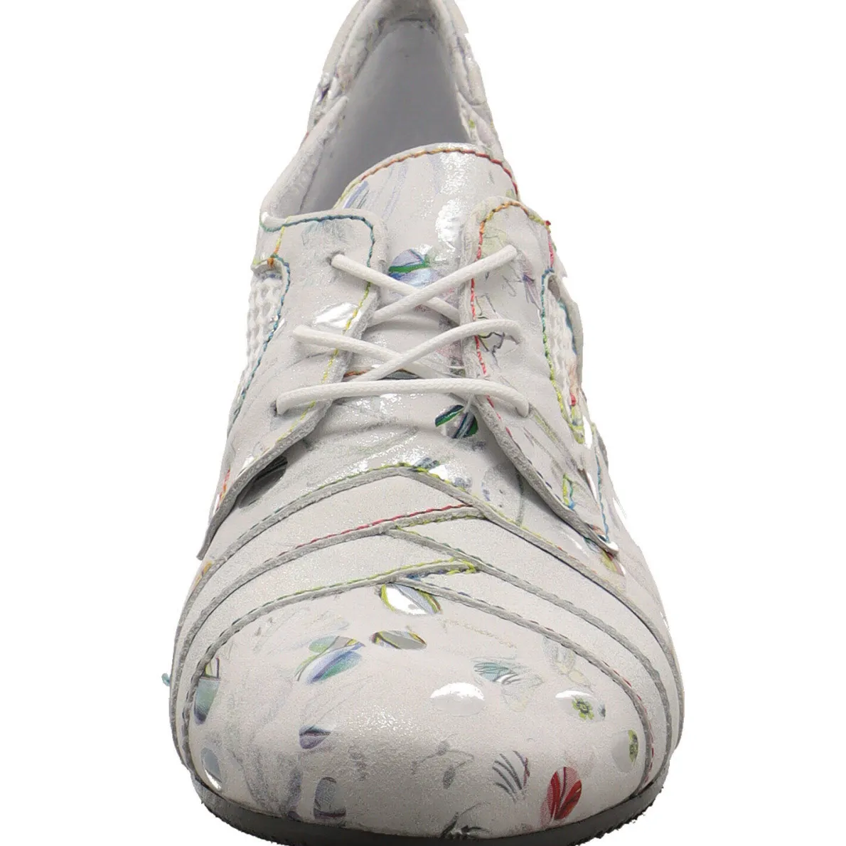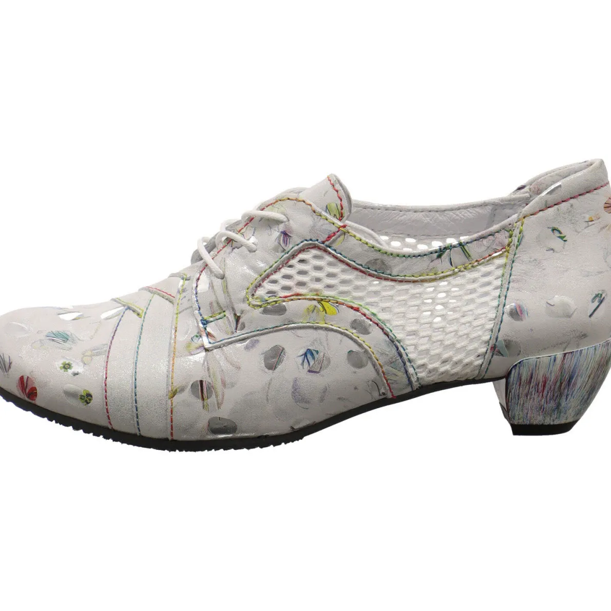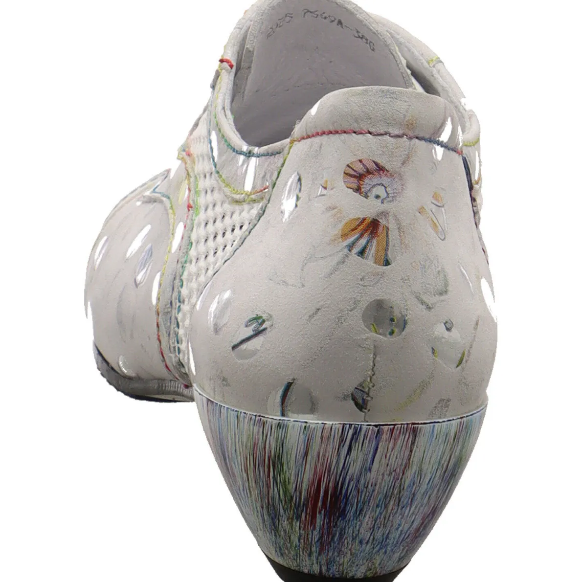 Er wurde aus edlem, weichen Echtleder in Grau gearbeitet und ist mit einem individuellen Print versehen, der im Licht toll Bunt schimmert. Ein Textil Einsatz an den Seiten ist wie ein Netz eingearbeitet und sorgt auch an warmen Tagen für ein angenehmes Gefühl beim tragen. Der bequeme Trichterabsatz ist mit Bunt und passt super zum Design des Pumps. Mit der Schnürung kommt du leicht in den Schuh und kannst ihn individuell auf deine Bedürfnisse anpassen.
