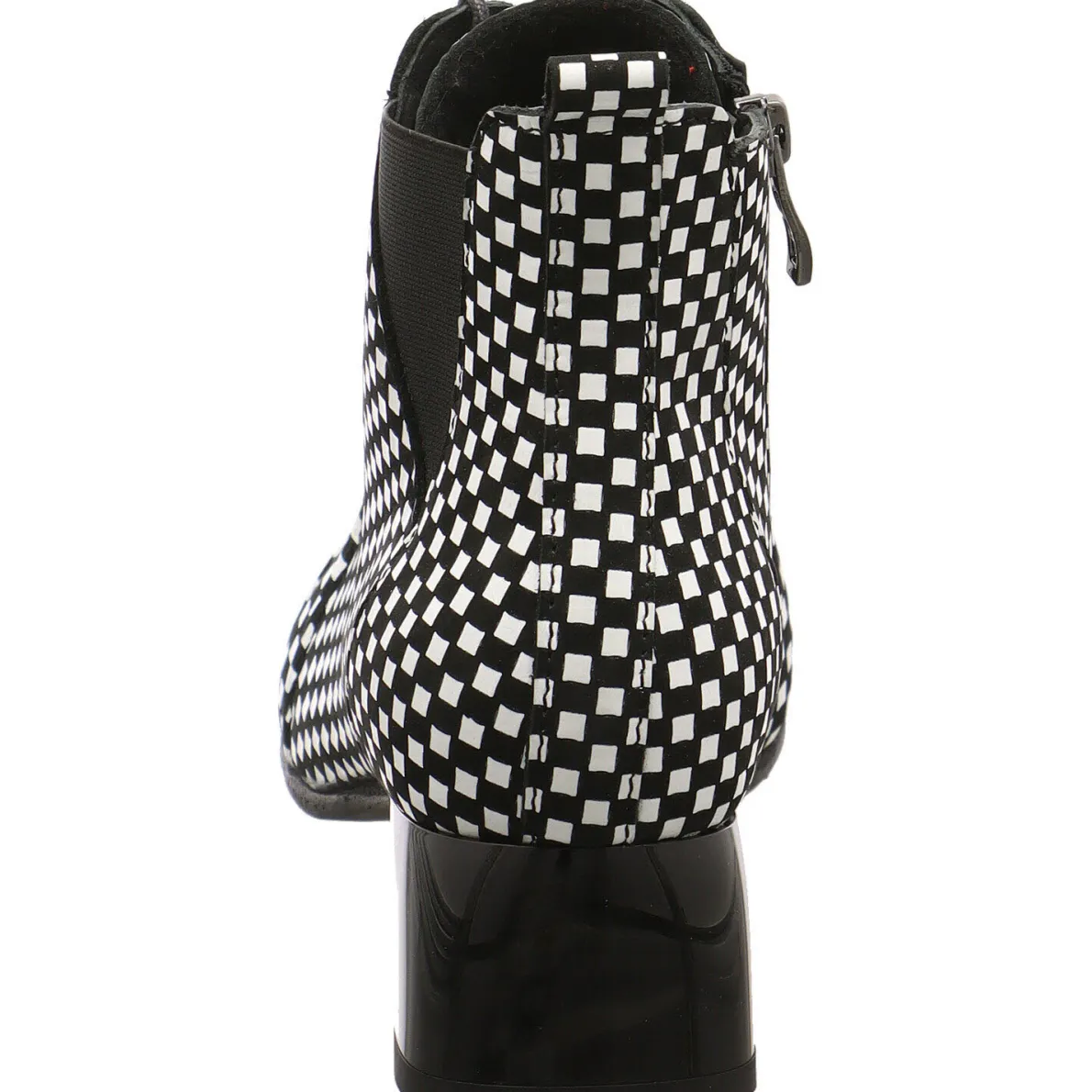 Unterstrichen wird das extra vagante Desing durch die besondere Linienführung der Stiefelette. Ein seitlicher Dehngummi, der Reißverschluss an der Seite und die Lasche am Schaft, sorgen für einen leichten Einstieg.