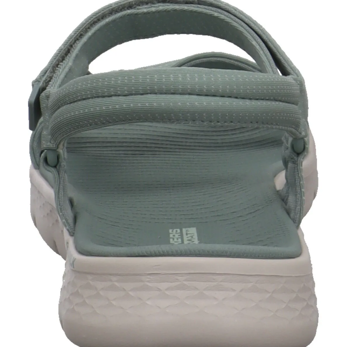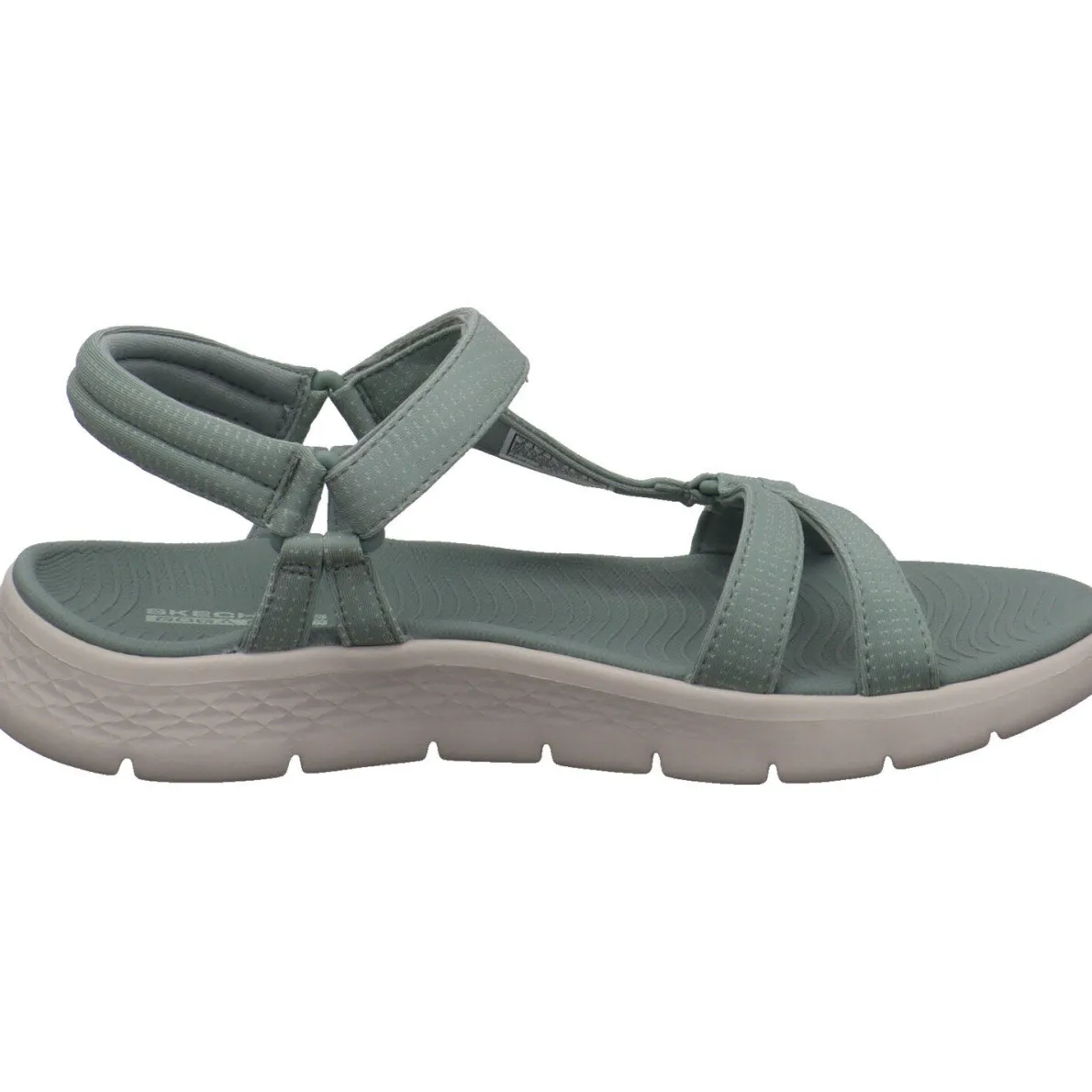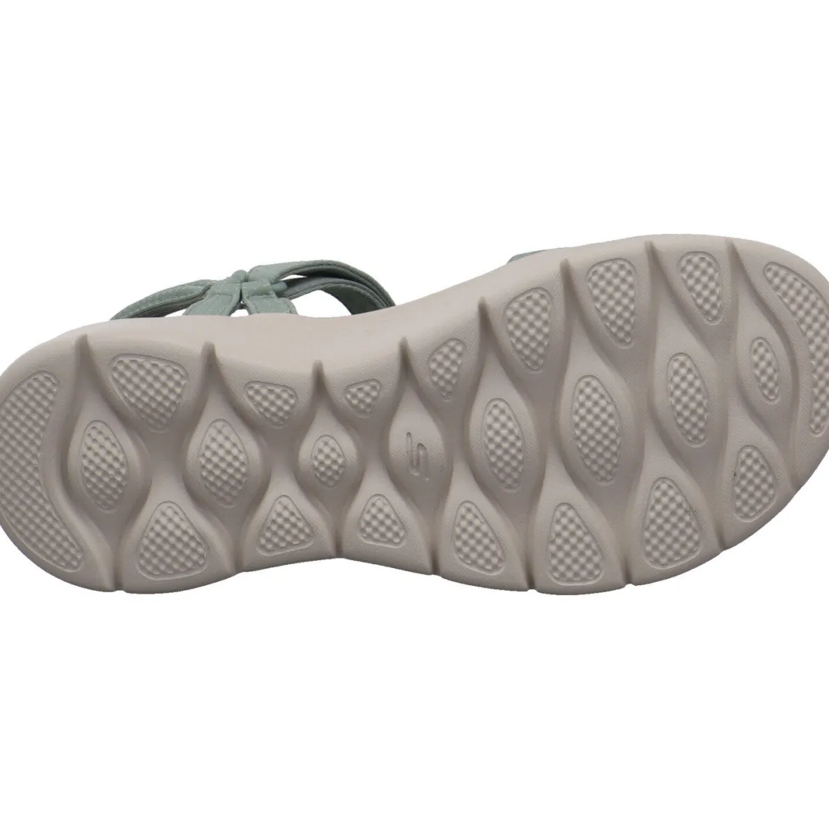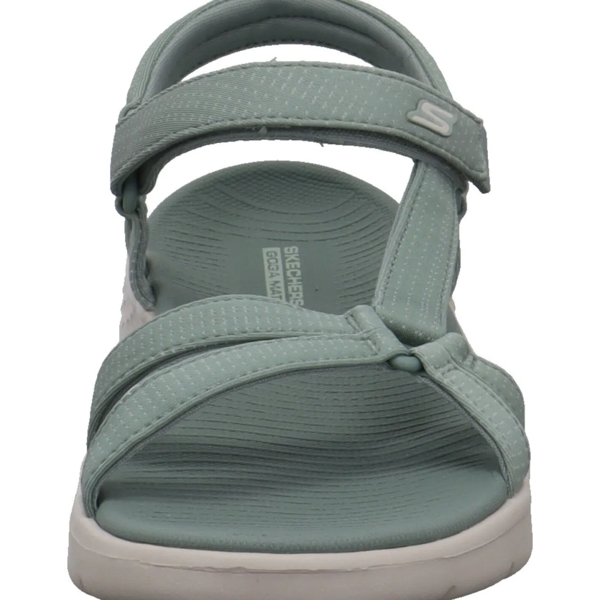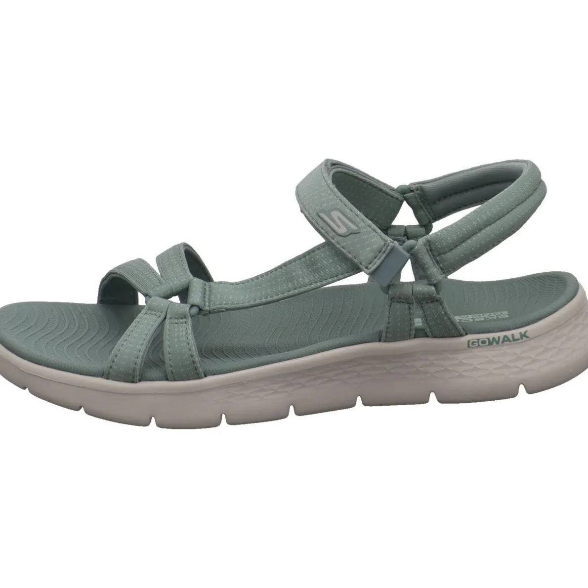 Perfekt für die Freizeit und ausgedehnte Touren in der Natur ist diese sportliche Damen Sandale Go Walk Flex Sandal Sublime von Skechers. Die Riemen aus Textil in Grün sind angenehm weich und durch den Klettverschluss am Knöchel kannst du den Schuh genau an deinen Fuß anpassen. Das vorgeformte Goga Mat Fußbett und die leichte Ultra Go Dämpfung bieten dir einen angenehmen Tragekomfort. Der Schuh ist in der Maschine kalt waschbar. Auch ideal als leichte Trekkingsandale.