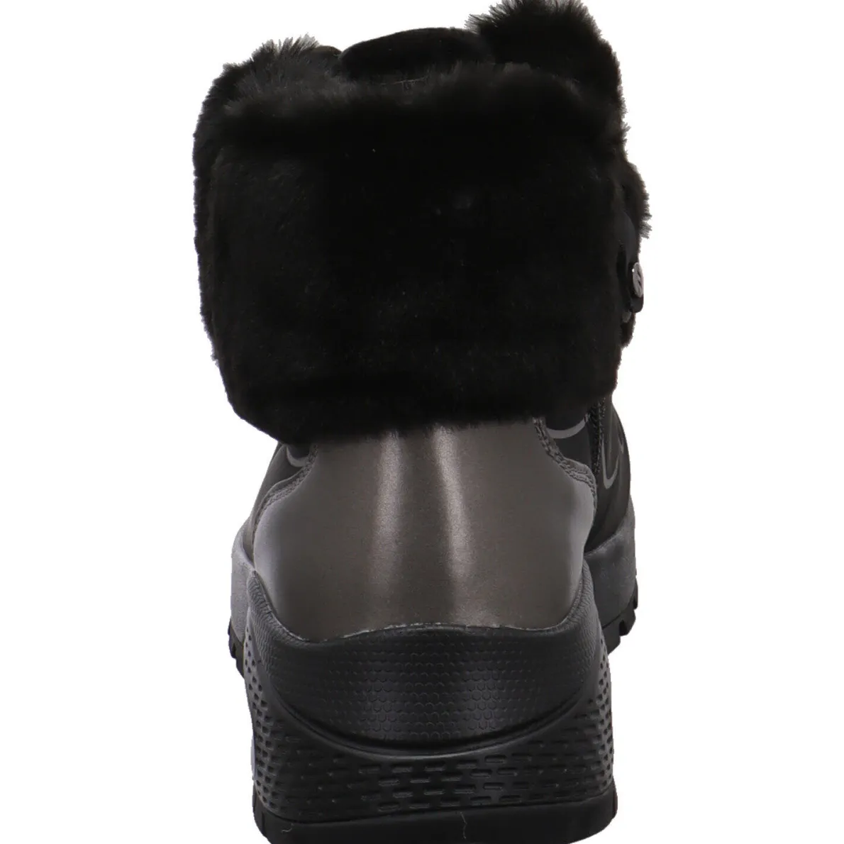 Dafür gibt es diesen tollen Damen Schnürboots Uno Rugged – Fall Shimmer. Das Obermaterial aus Kunstleder in Schwarz ist auf dem Blatt mit einer Prägung versehen. Farbakzente in Silber, passen perfekt zum Design. Highlight ist dabei die tolle Umrandung aus Textil Plüsch vom Schaft. Die Zunge ist weich gepolstert und mit dem seitlichen Reißverschluss, kommst du ganz leicht in den Boots. Die Schnürung optimiert die Passform. Auch hier hast du die, in die Laufsohle integrierte, Skech Air Lustkissen gedämpfte Zwischensohle.