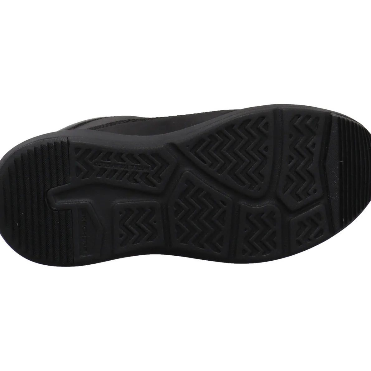 Gefertigt aus einem Mix aus Echtleder und Kunstleder in Schwarz, begeistert er uns durch seine komfortable Ausstattung. So sind der Schaft und die Zunge angenehm weich gepolstert. Dank der Schnürung und der Lasche am Schaft kommt man spielend in die Stiefelette.