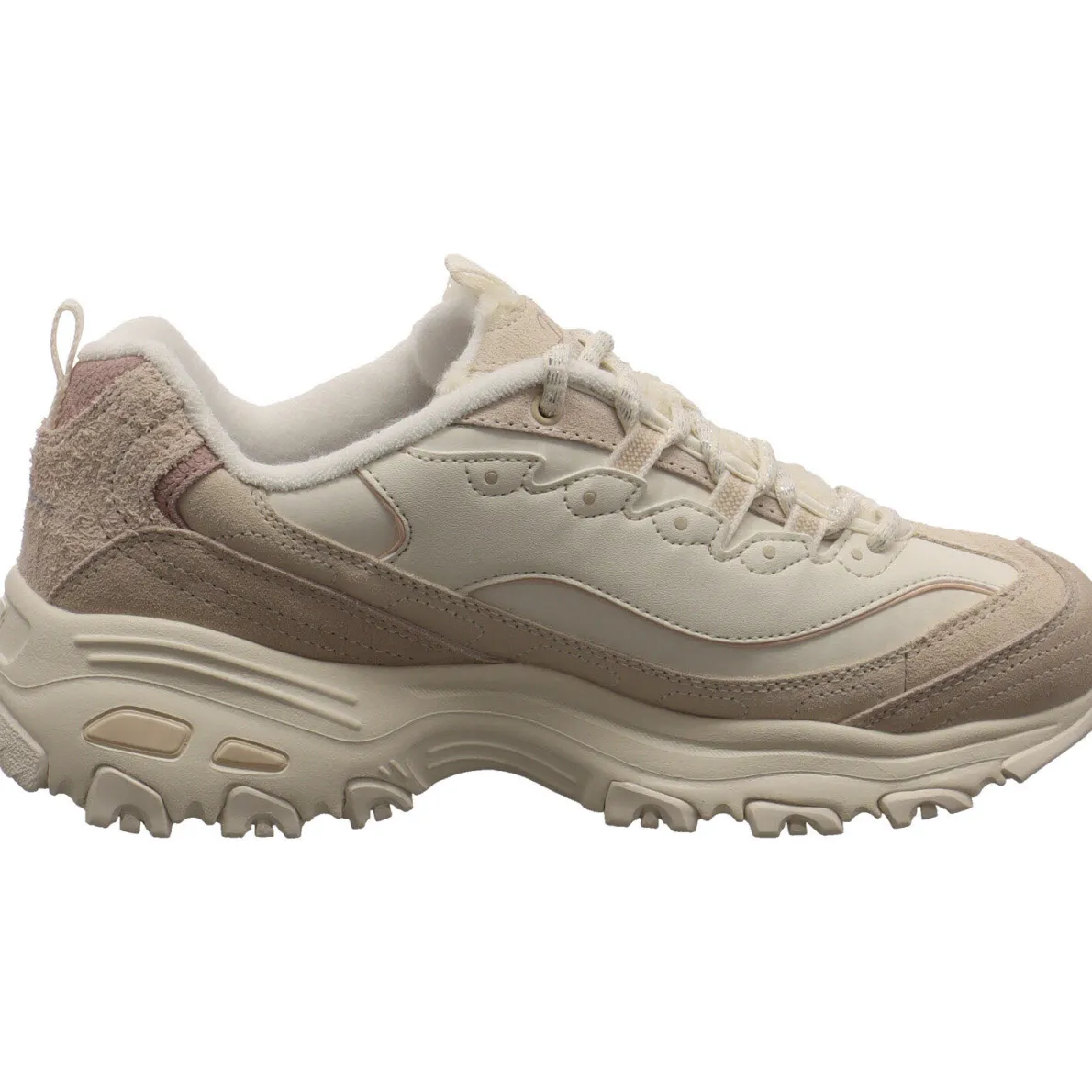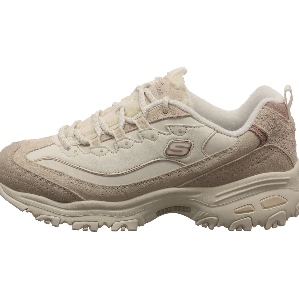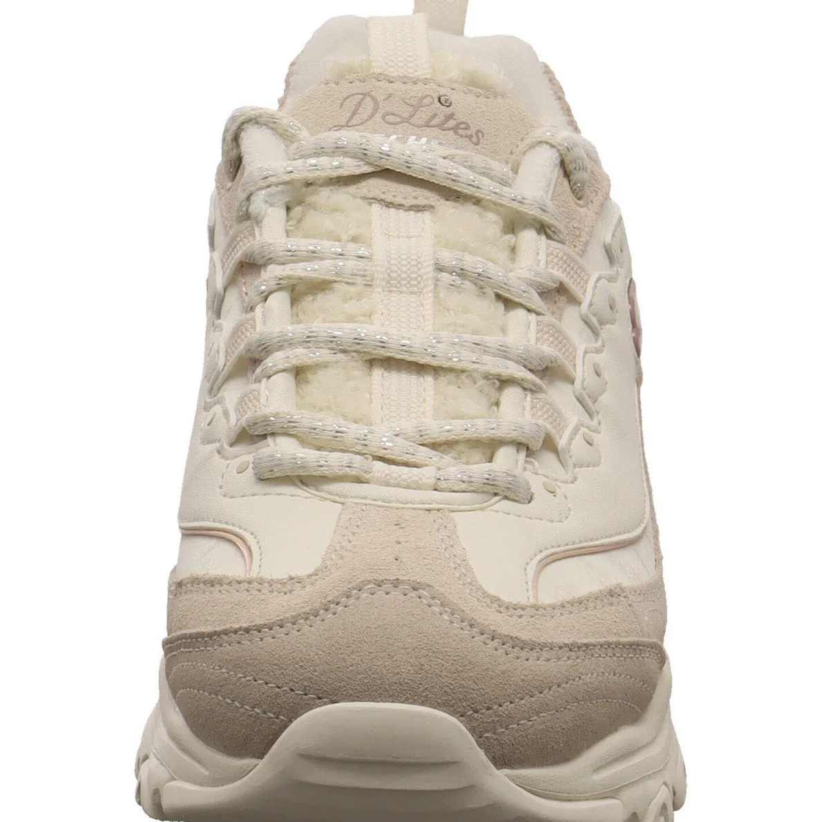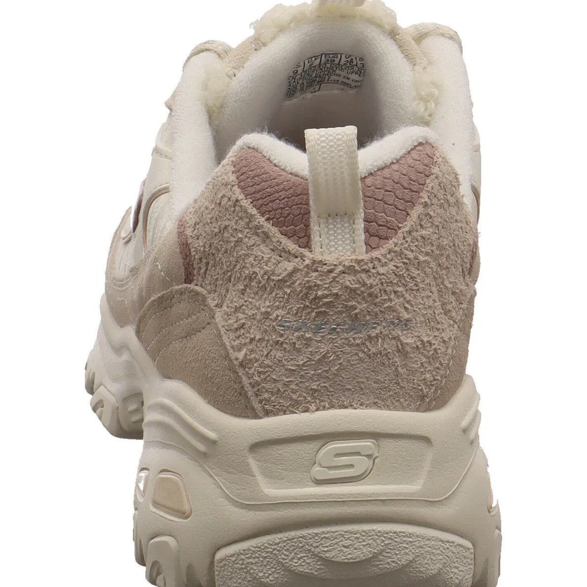 Der D’Lites Cold Day’s Damen Sneaker kombiniert modernes Aussehen mit funktionellen Elementen. So ist die Zunge mit einem Sherpa-Trimm für ein stilvolles, winterfestes Design ausgestattet. Die luftgekühlte Memory Foam Innensohle sorgt für außergewöhnlichen Komfort. Ein Silberfaden in den Schnürsenkeln und das Skechers Logo Detail an der Seite geben dem Schuh das gewisse Etwas. Das Frottee Innenfutter bietet zusätzlichen Komfort. Und die markante Laufsohle gibt Halt.