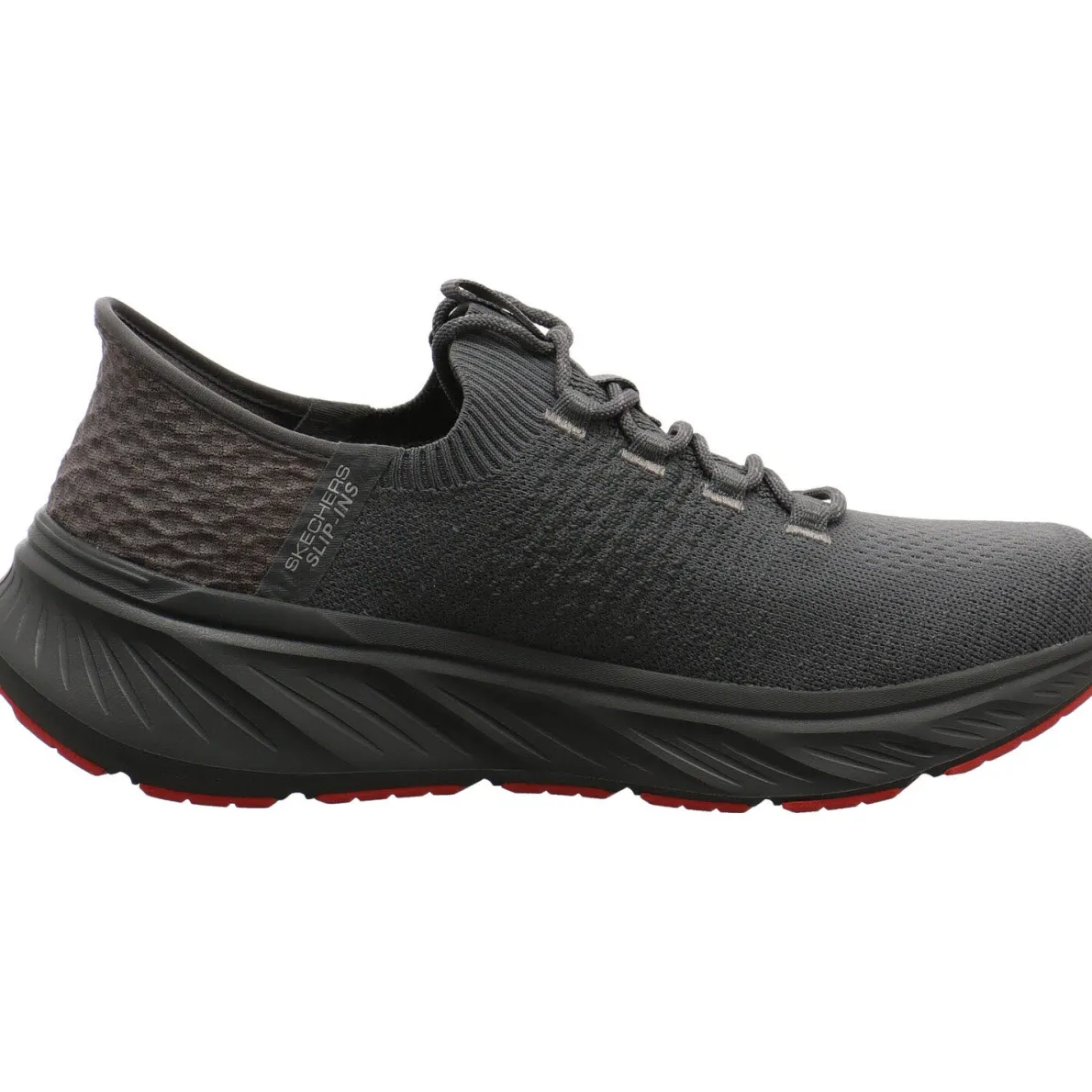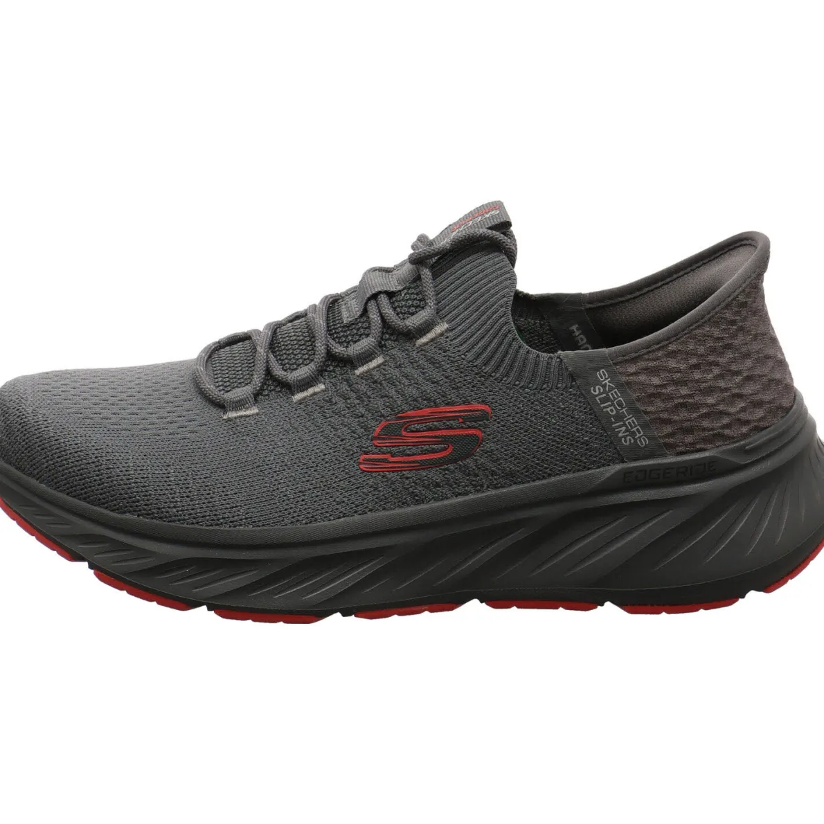 Ein weiteres Herren Modell aus der Skechers Hands Free Slip-Ins Kollektion ist der Edgeride – Raygo. Dieser sportliche Slip-in Sneaker ist voll vegan aus Funktionsstrick in grau gearbeitet und mit Akzenten in Rot verziert. Durch das besondere Fersenkissen, kannst du ohne Hilfsmittel direkt in den Schuh schlüpfen. Eine verstellbare Schnürung, ist vorhanden, mit der du die Passform noch optimieren kannst. Auch hier findest du die Skechers Air-Cooled Memory Foam Innensohle. Durch die Relaxed Fit Passform, bietet er dem Fuß mehr Platz und durch den Stretch Anteil zusätzlichen Komfort.