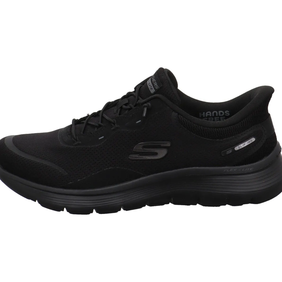 Der Flex Appeal 5.0 Easy Breezy von Skechers in Schwarz ist ein komfortabler Damen Sneaker aus Textil und Synthetik im sportlich bequemen Design. Er gehört zur Hands Free Slip Ins Kollektion von Skechers.