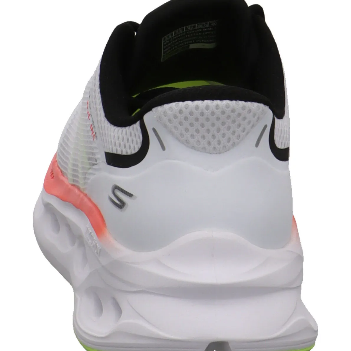 Er gehört zur Hands Free Slip-ins Kollektion und ist mit dem typischen Heel Pillow an der Ferse ausgestattet. So kannst du ohne Hilfsmittel, bequem in den Schuh hineinschlüpfen. Er begeistert durch sein modisches Monomesh Obermaterial in Weiß mit Akzenten in Gelb und Orange. Mit der Schnürung kannst du ihn genau auf deinen Fuß anpassen. Er verfügt über eine atmungsaktive Skechers Air-Cooled Goga Mat Komfort Innensohle, während die Ultra Go Dämpfung und das geometrische Glide Step Design für ein optimalen Halt sorgen und das Abrollen unterstützen.