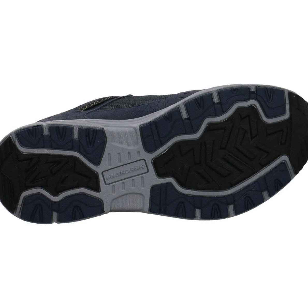 Gefertigt in einem Mix aus griffigem Veloursleder und Textil in Blau und Schwarz ist der Schuh ein sportlicher Begleiter für alle Outdoor Aktivitäten und überzeugt mit seiner komfortablen Ausstattung. Das soft weiche Relaxed Fit Memory Foam Fußbett passt sich binnen kürzester Zeit Ihrer Fußform an und die gut profilierte Laufsohle aus Gummi macht den Schuh unverzichtbar auf allen Untergründen.