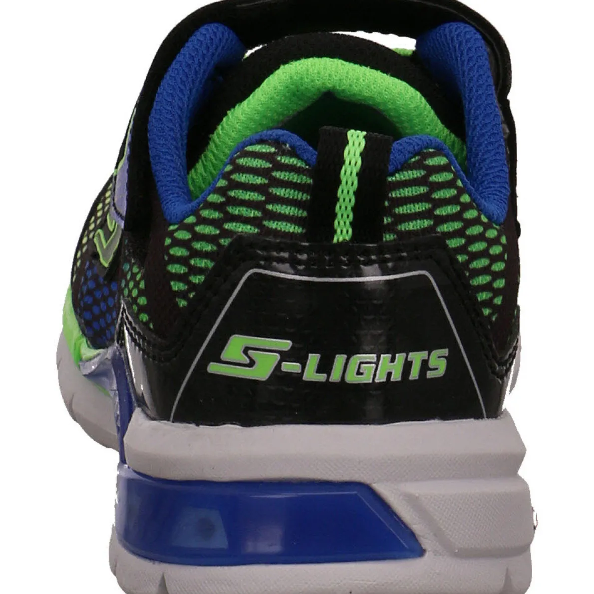 Der Skechers S Lights Erupters II Lava Wave ist ein cooler Kinder Sneaker in Schwarz, Blau und Neongrün und wurde aus anpassungsfähigem Textil mit synthetischen stabilisierenden Einsätzen gefertigt. Schuhzunge und Schaftbereich sind angenehm gepolstert und tragen zu einem komfortablen Laufgefühl bei.
