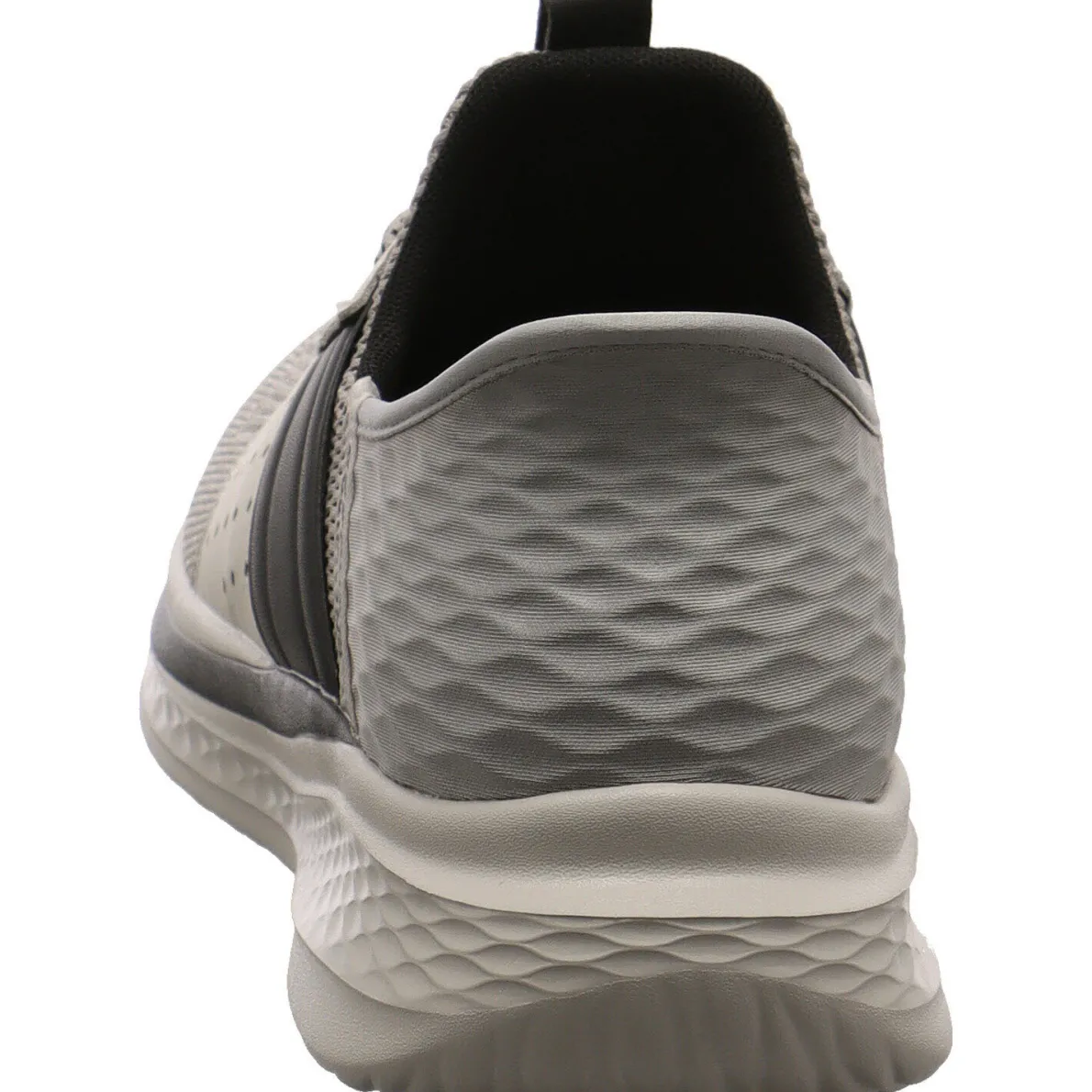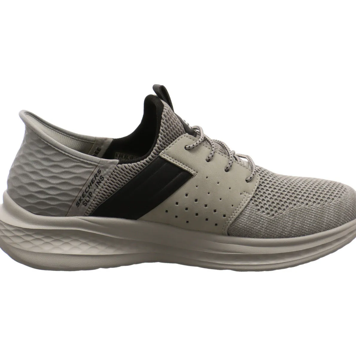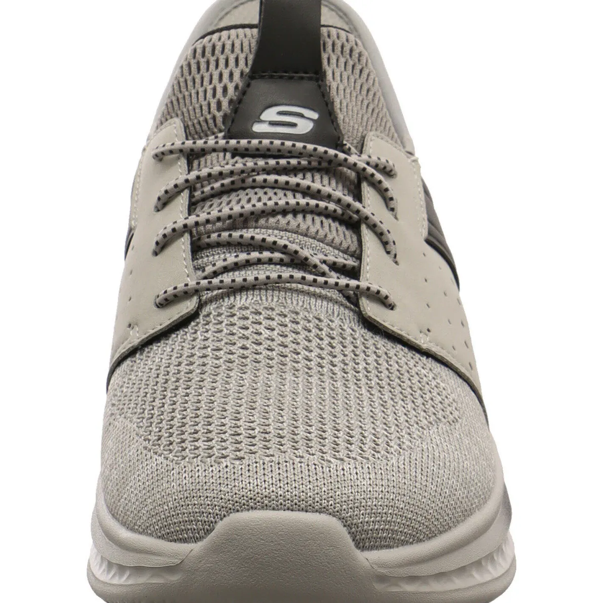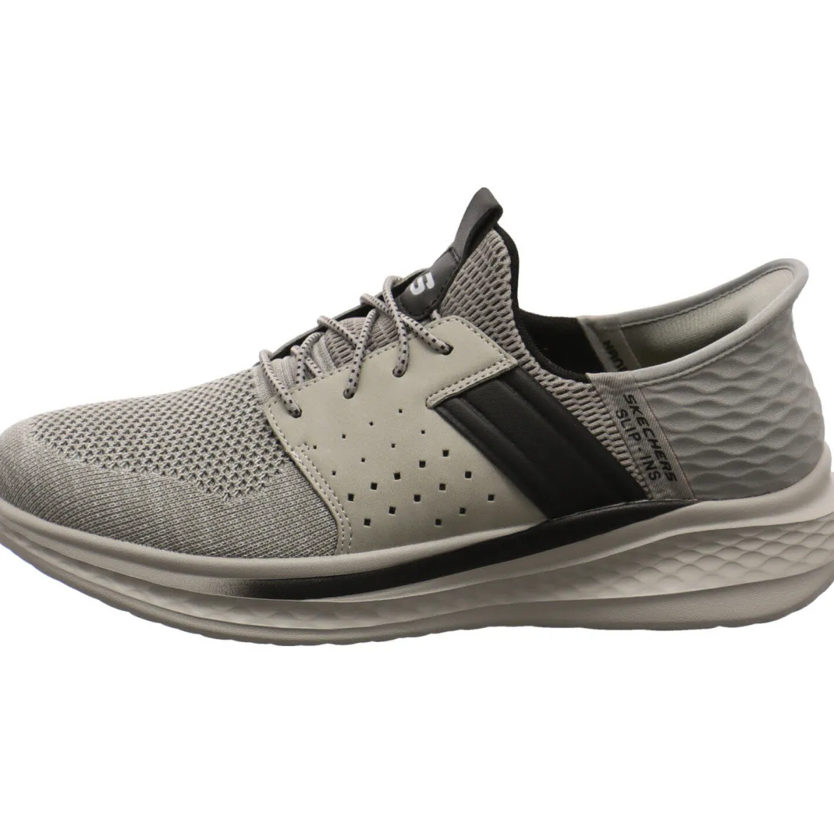 Der Slade Ocon von Skechers in Grau ist ein komfortabler Herren Slip-Ins Sneaker in sportlich bequemem Design. Er ist sehr leicht und flexibel und ermöglicht durch die Bungeeschnürung ein einfaches Hineinschlüpfen. Das Stretch Fit Obermaterial aus Textil Funktionsgewebe in Grau, mit tollen Kunstleder Einsätzen in Grau und Schwarz macht den Schuh super weich und flexibel, dank seiner sockenähnlichen Verarbeitung.