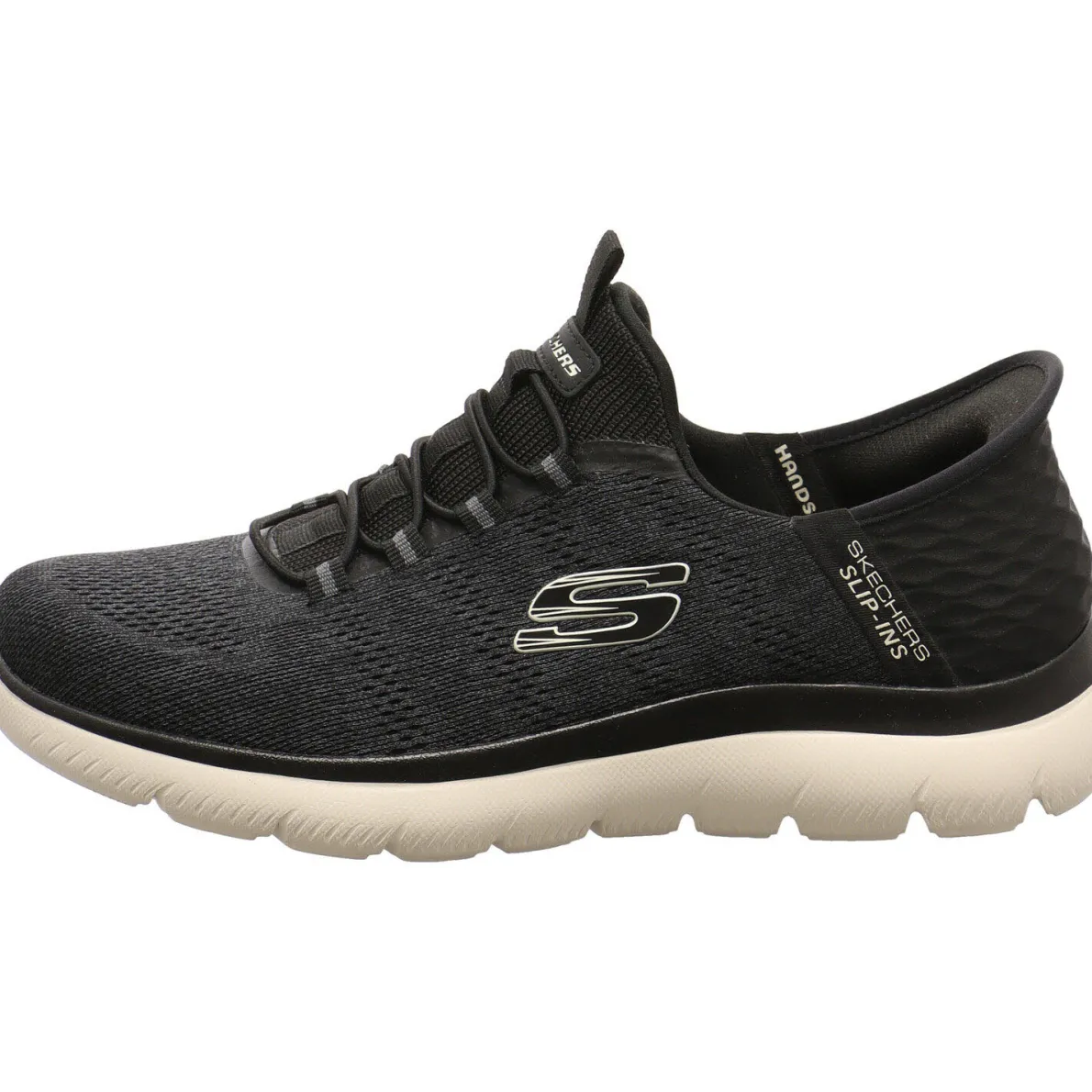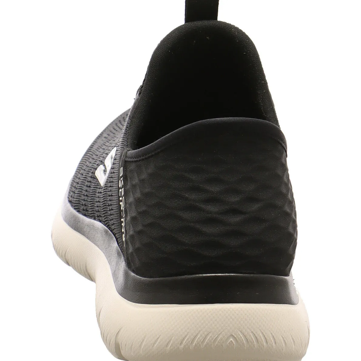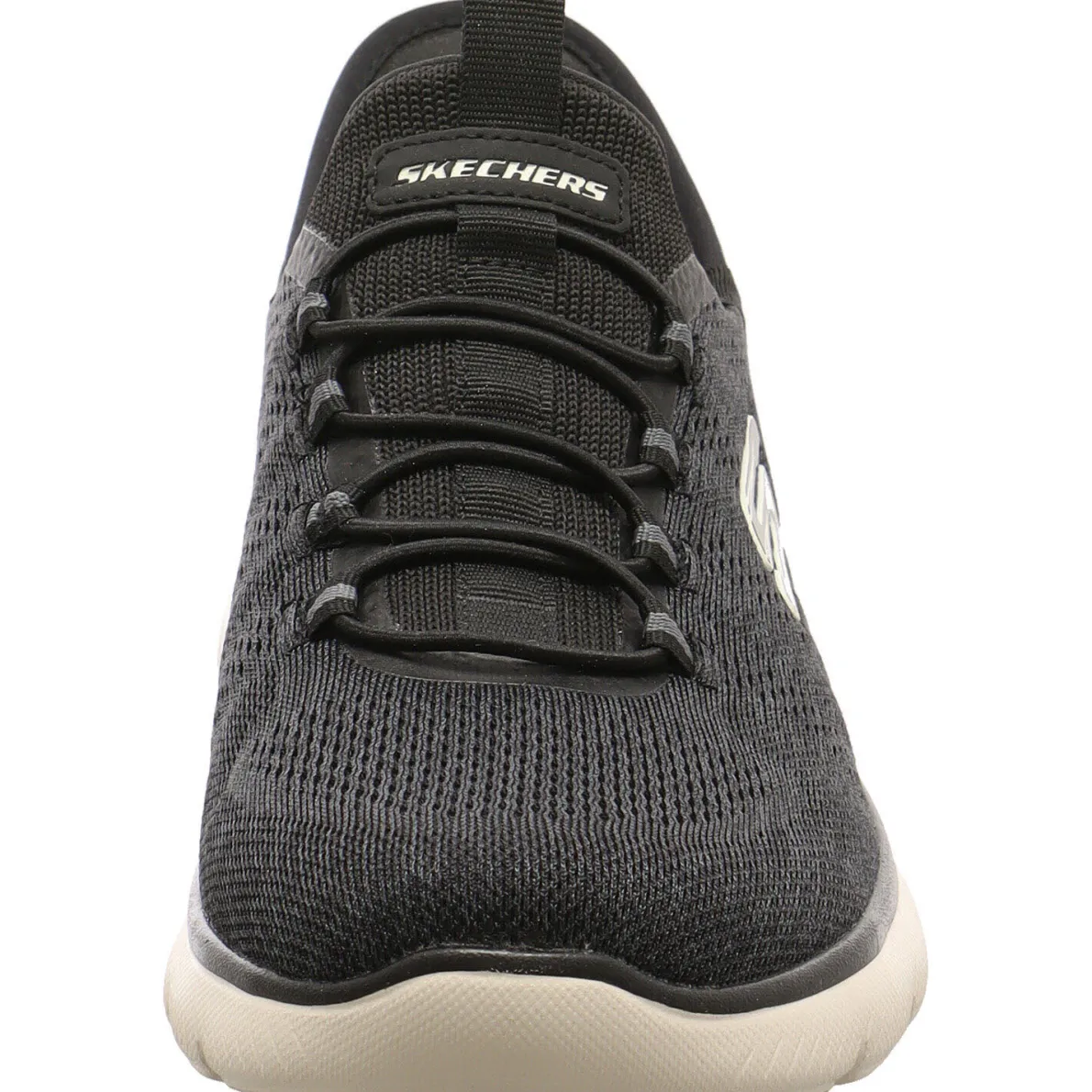 Der Summits Key Pace von Skechers in Schwarz ist ein komfortabler Herren Slip-Ins Sneaker in sportlich bequemem Design. Er ist sehr leicht und flexibel und ermöglicht durch die Bungeeschnürung ein einfaches Hineinschlüpfen. Das Stretch Fit Obermaterial aus Textil Funktionsgewebe in Schwarz, macht den Schuh super weich und flexibel, dank seiner sockenähnlichen Verarbeitung.