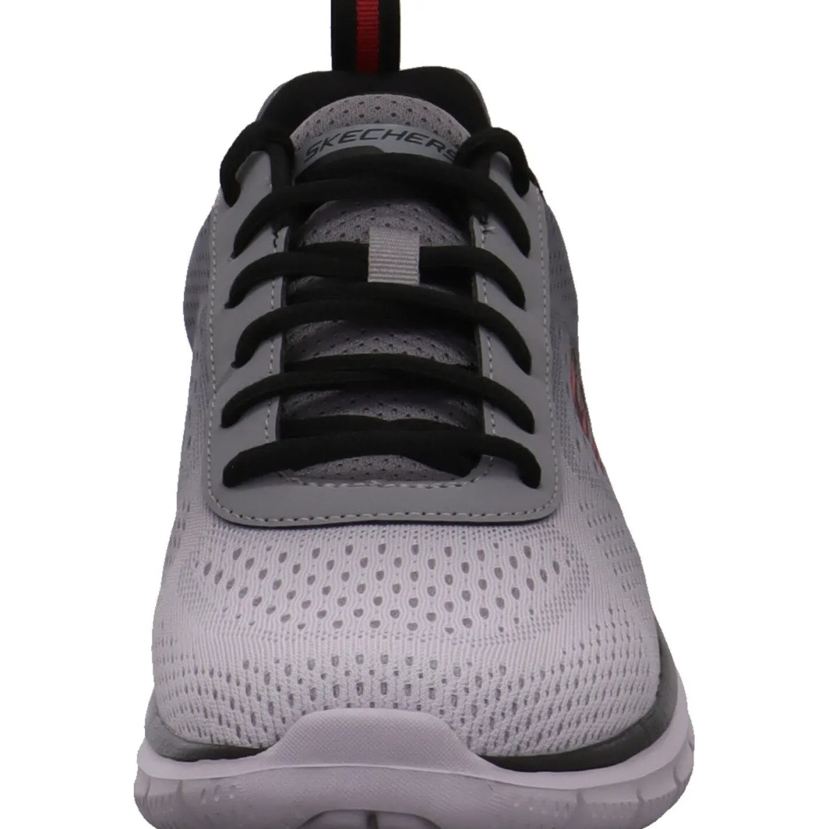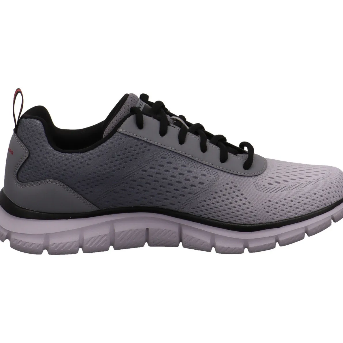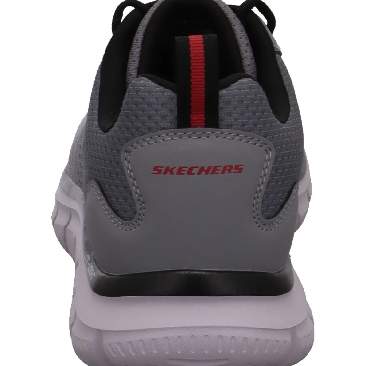 Der Track Ripkent aus dem Hause Skechers ist ein vielseitiger Herren Sneaker in Grau mit Rot.