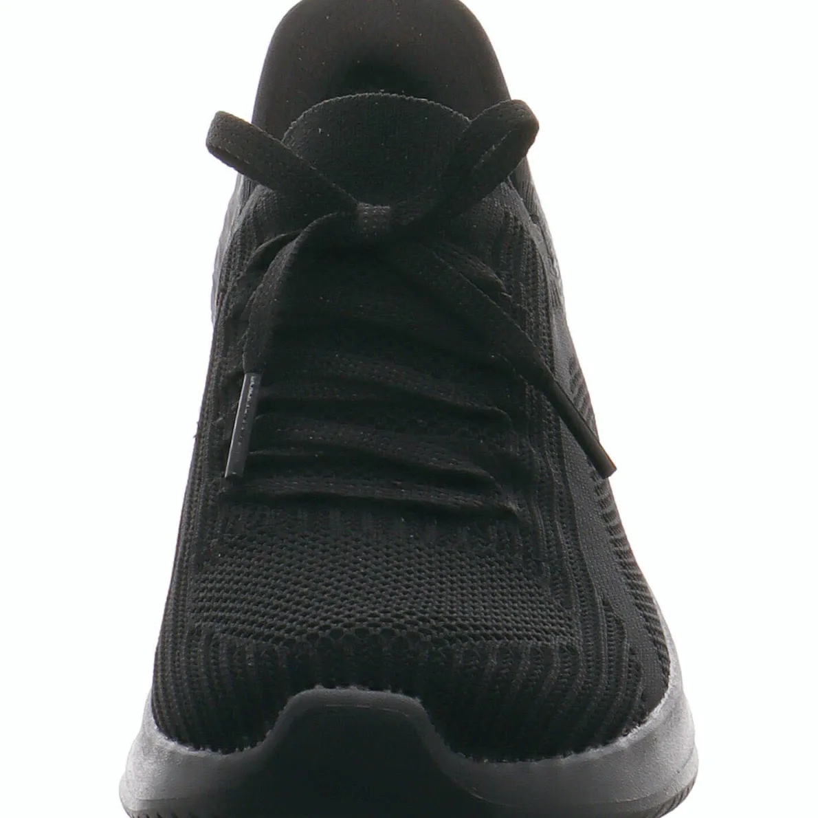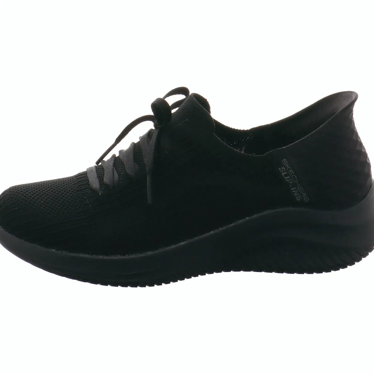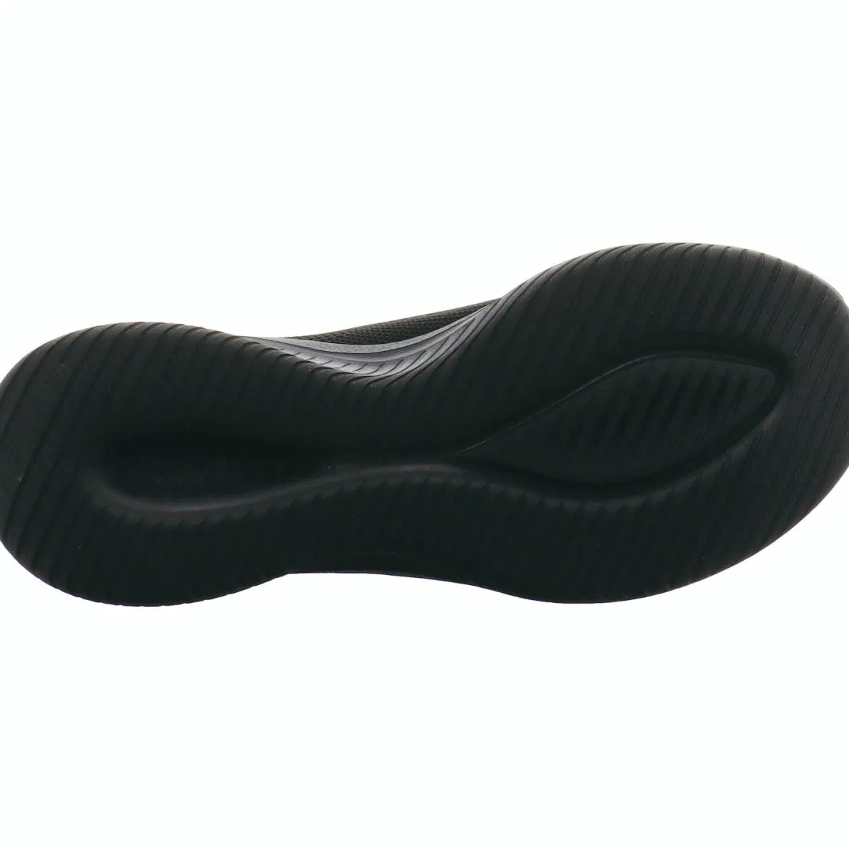 Der Ultra Flex 3.0 Brilliant Path von Skechers in Schwarz ist ein komfortabler Damen Slip-Ins Sneaker aus Textil im sportlich bequemen Design. Er ist sehr leicht und flexibel und ein einfaches Hineinschlüpfen ist durch den erhöhten Schaft und die Slip In Einstieghilfe an der Ferse super leicht. Eyecatcher sind das Obermaterial im Strick Look mit fester Schleife auf dem Rist und die ausgefallen gestaltete Laufsohle in Schwarz.