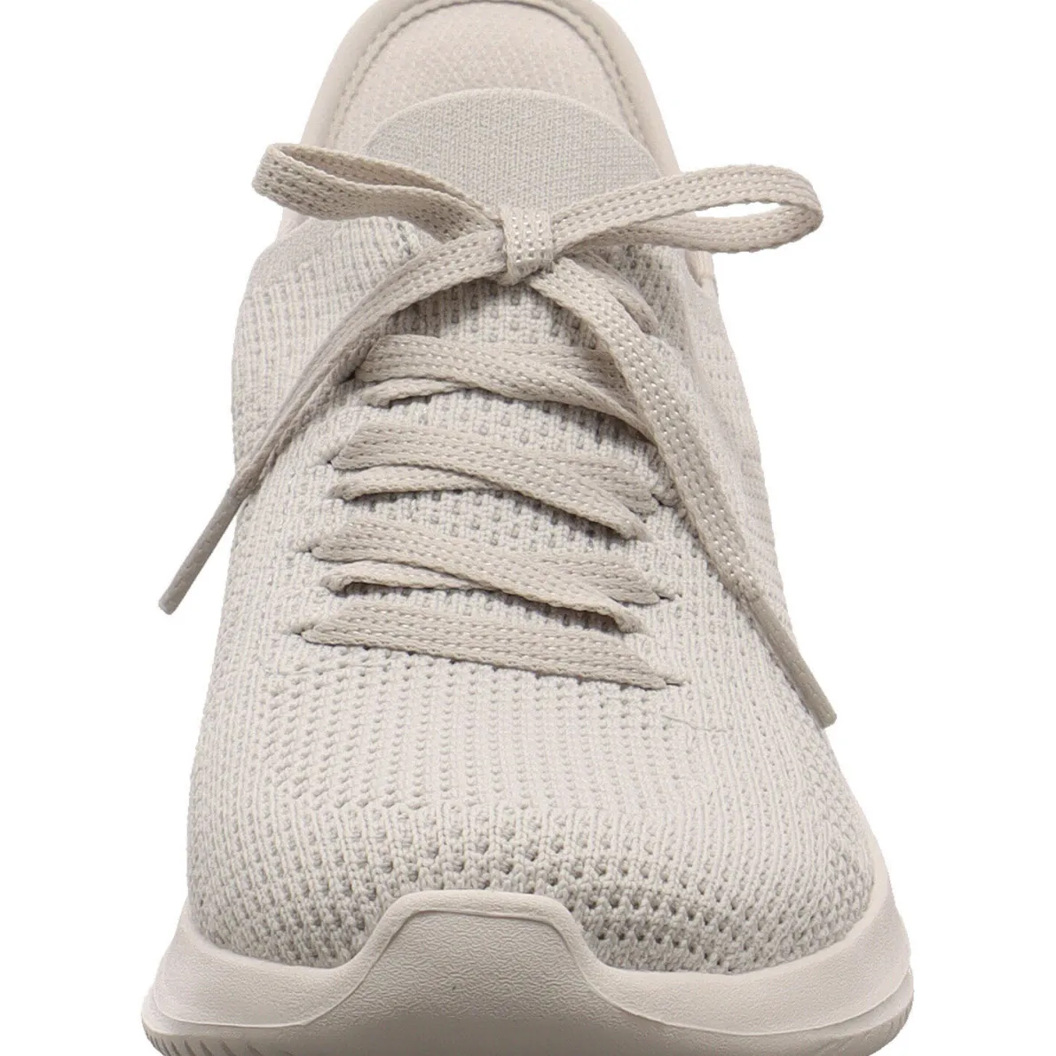 Der Ultra Flex 3.0 Elevated Motion von Skechers in dezentem Grau ist ein komfortabler Damen Sneaker aus Textil im sportlich bequemen Design. Er ist sehr leicht und flexibel und ein einfaches Hineinschlüpfen ist durch den erhöhten Schaft und die Slip Ins Einstieghilfe an der Ferse gewährleistet. Eyecatcher sind das Obermaterial im Strick Look mit fester Schleife auf dem Rist und die ausgefallen gestaltete Laufsohle in Weiß.