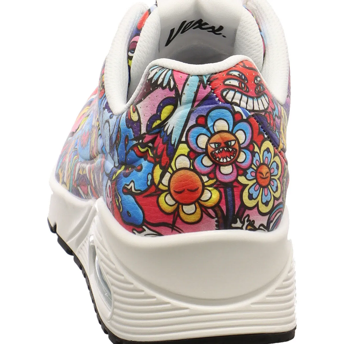 Ein ganz besonderer Damen Sneaker, ist das Modell Uno Color Doodle aus der Zusammenarbeit von Skechers und dem Künstler Vexx.