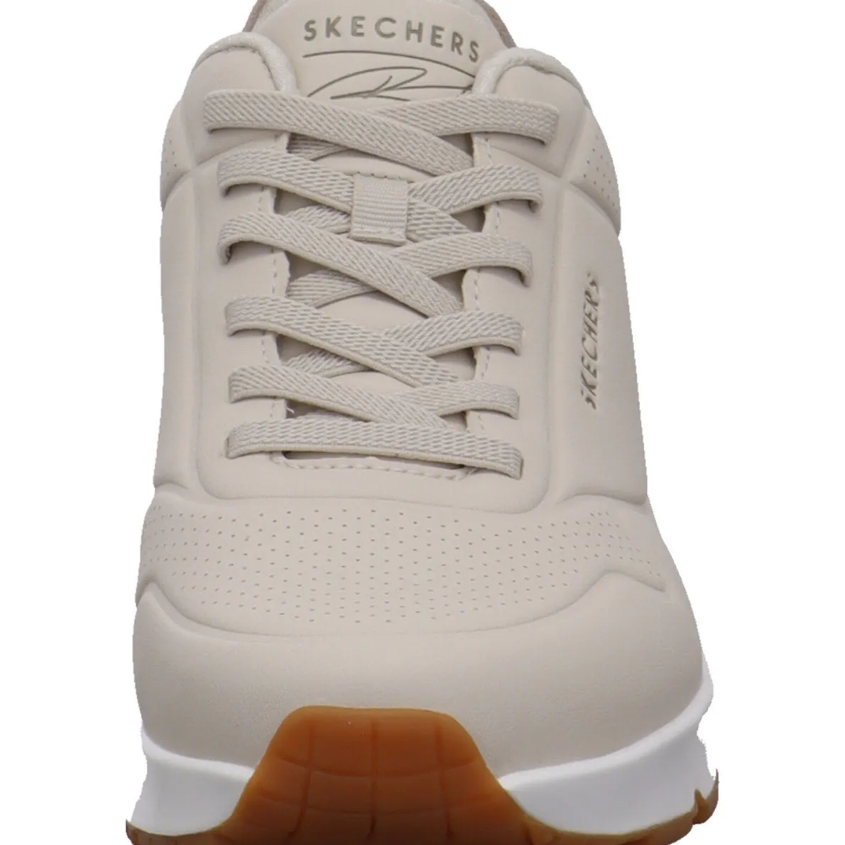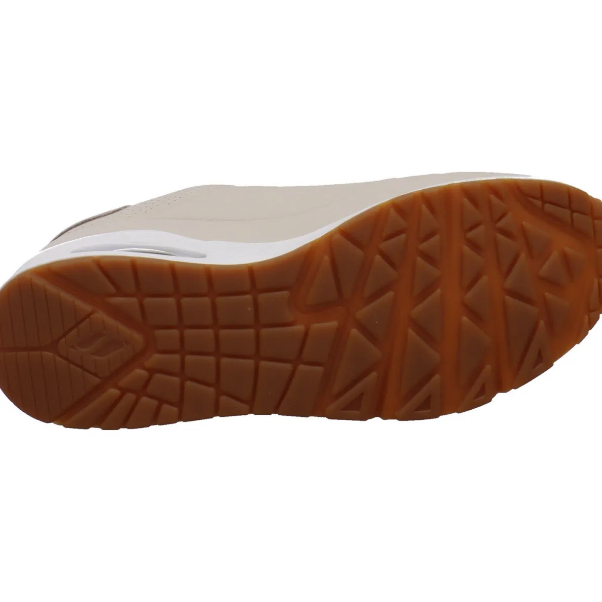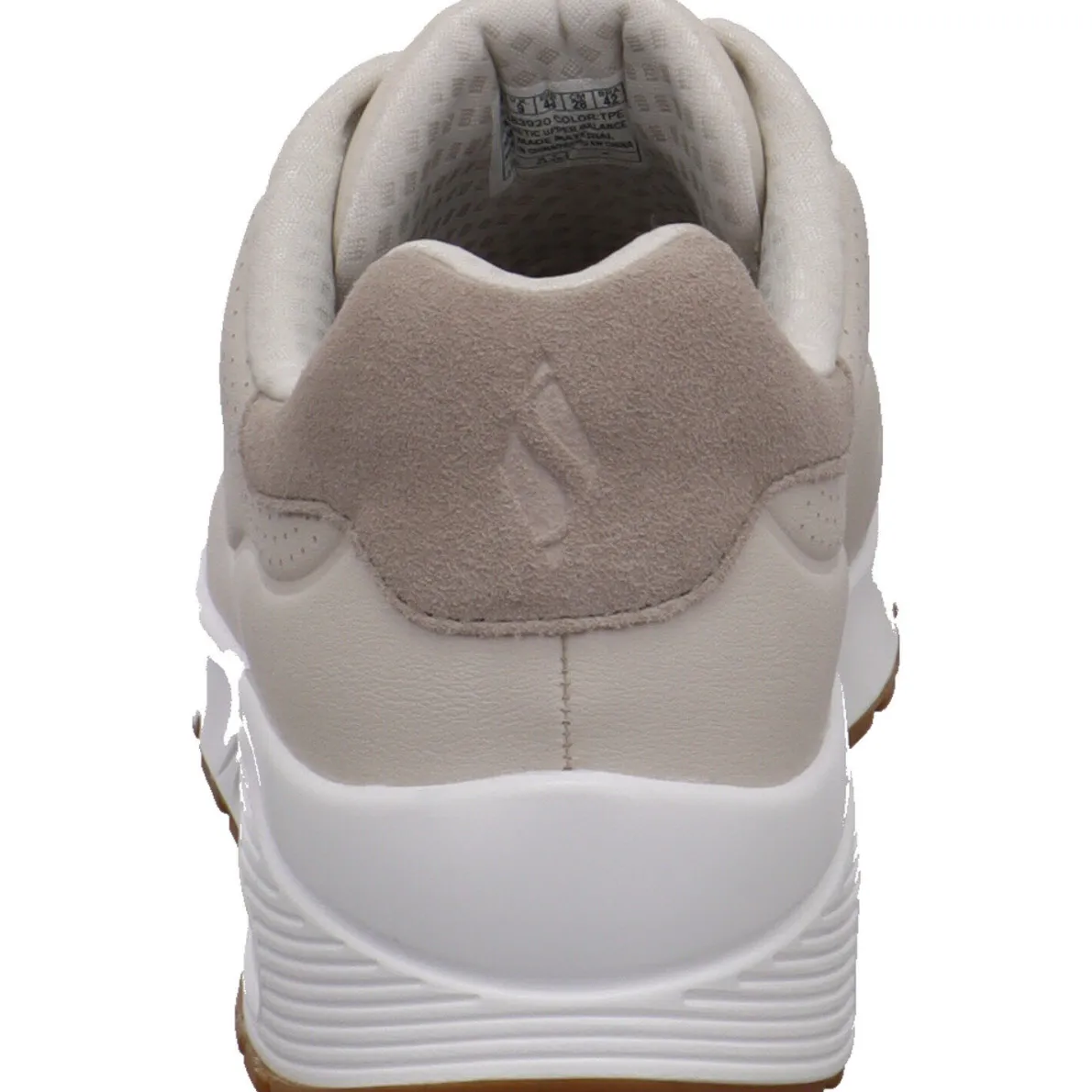 So ist das Obermaterial aus Kunstleder in Beige an der Ferse mit einem Einsatz in Nubukleder Optik verziert. Kleine Lasercuts auf dem Obermaterial und ein Muster des Innenfutter, geben dem Schuh seinen besonderen Look.