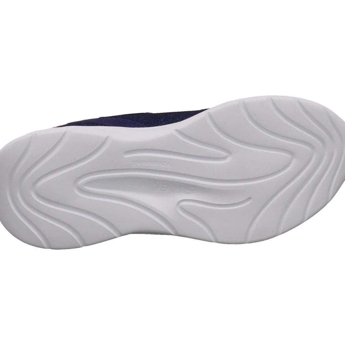 Das Textil Mesh Gewebe in Blau ist mit einem Allover Glitzer Schimmer versehen. Dank der Gummischnürung, dem Klettverschluss und der Lasche am Schaft, ist der Einstieg besonders einfach.