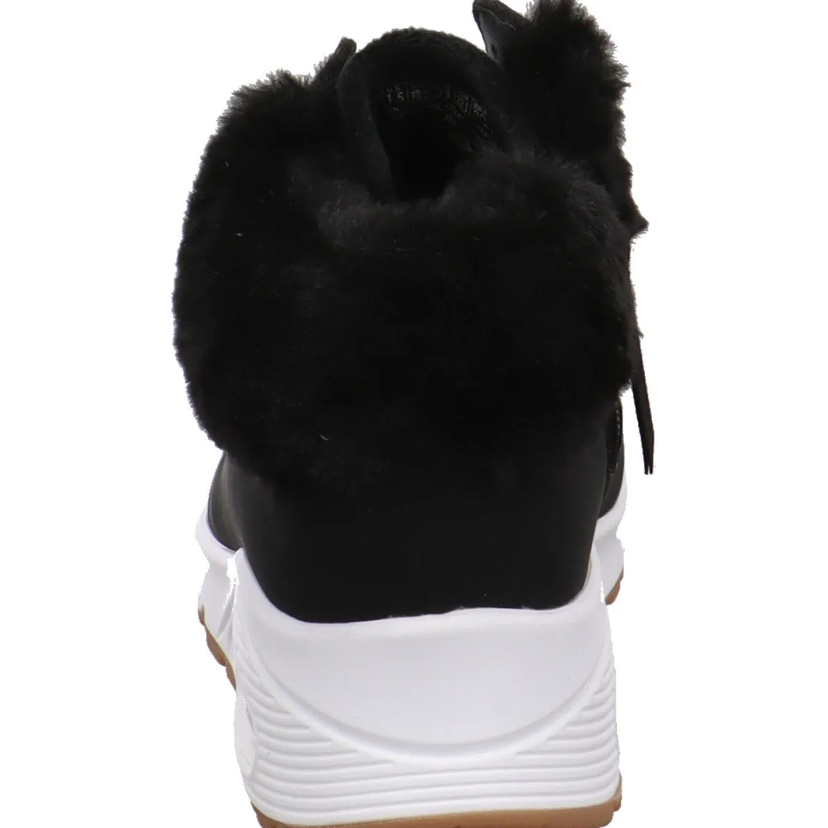 Er wurde aus Kunstleder in Schwarz gefertigt und ist am Schaft mit einem weichen Plüschrand gearbeitet. Durch den seitlichen Reißverschluss ist der Einstieg Kinder leicht und mit der Schnürung kann er genau an den Fuß angepasst werden. Auch hier wurde die bekannte Skechers Air Cooled Memory Foam Innensohle verarbeitet. Zusammen mit der luftgepolsterten Zwischensohle, sorgt sie für einen tollen Tragekomfort.