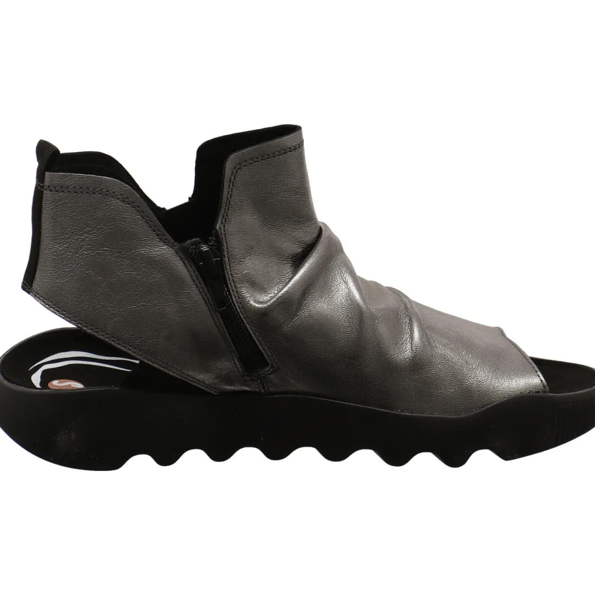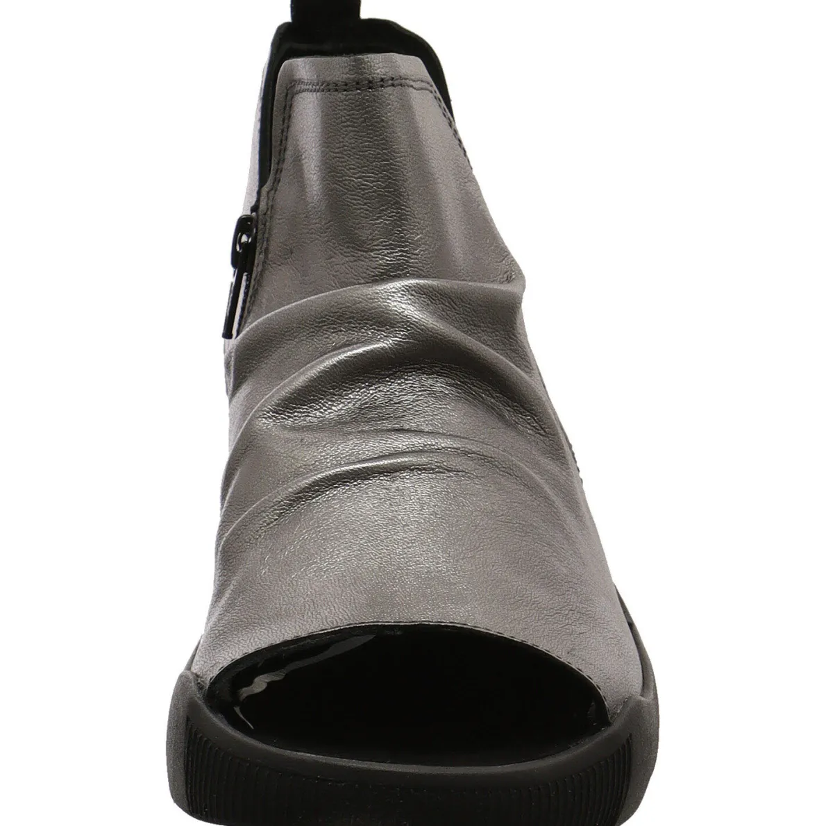 Das Obermaterial wurde aus besonders weichem Echtleder in Grau, Silber Metallic gefertigt.