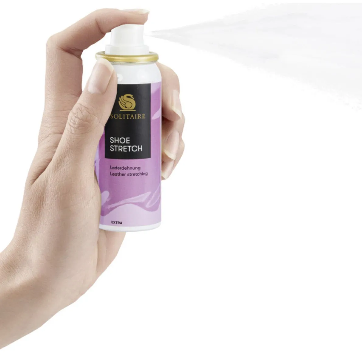 Das Shoe Stretch aus dem Hause Solitaire ist ein Spezial-Dehnungsschaum zur schnellen Dehnung von zu engen Schuhen. Er wird direkt in den Schuh gesprüht. Der Schuh sollte anschließend sofort getragen werden und dann mit Hilfe eines Schuhspanners trocknen.