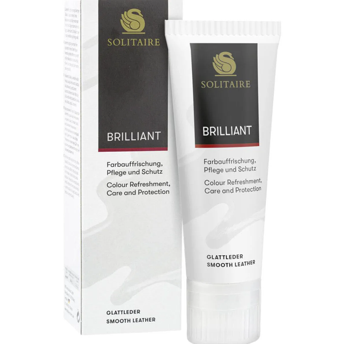 Die Solitaire Brilliant Creme Dunkelblau ist eine Pflegecreme speziell für Schuhe aus Glattleder.