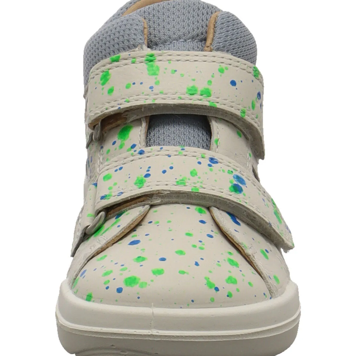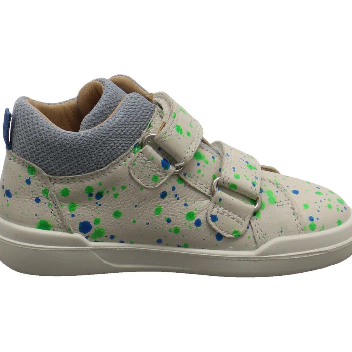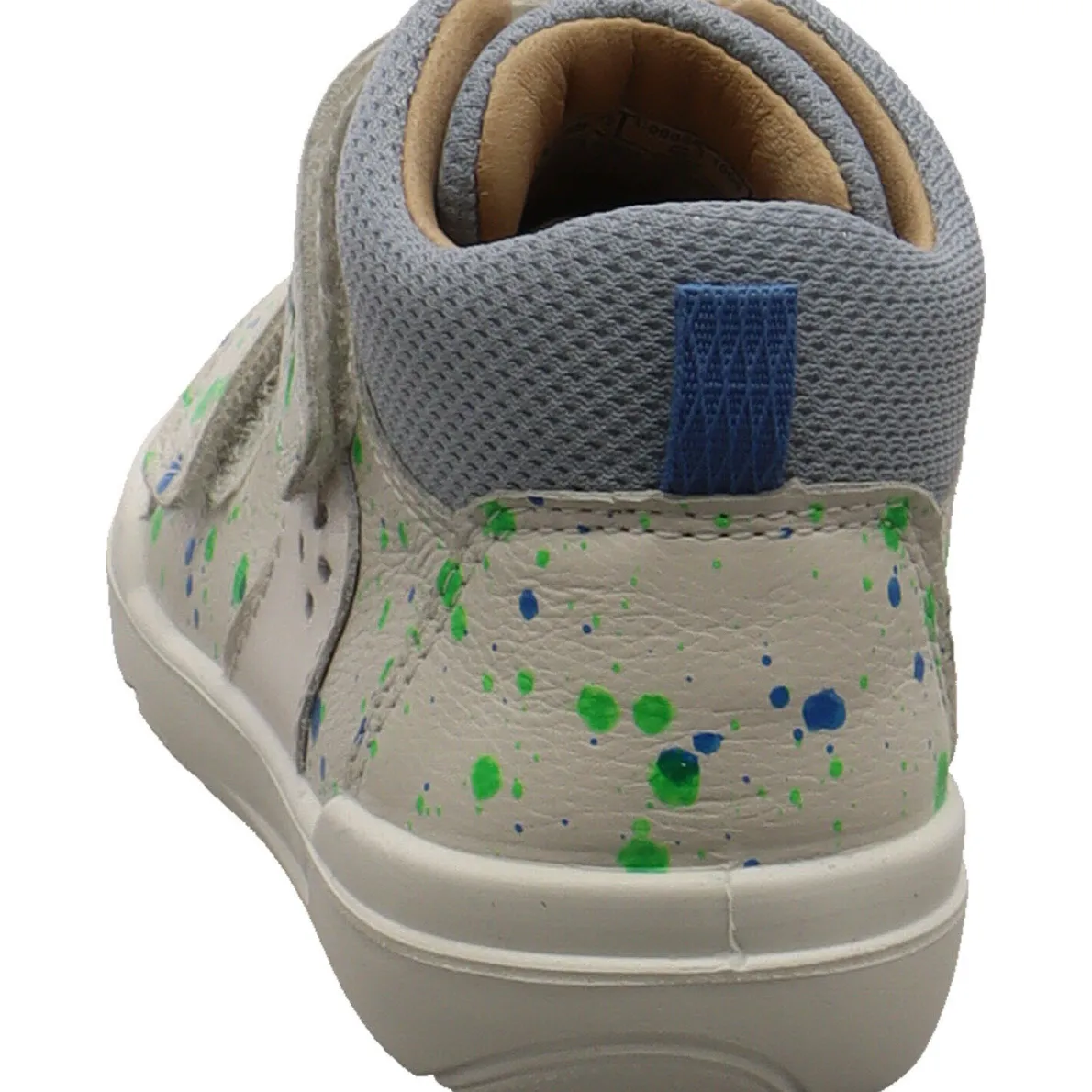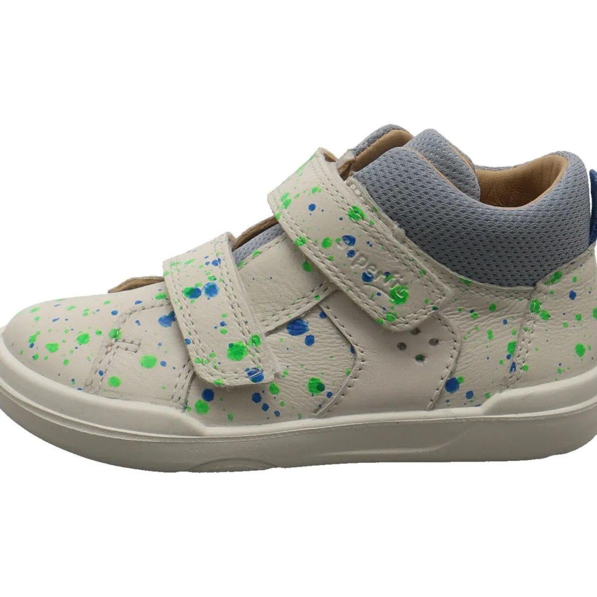 Der Superfree ist ein toller Kinder Barfußschuh von Superfit. Er begeistert zum einen durch seine hochwertige Verarbeitung aus Echtleder mit Textil und die tolle Farbgebung. So ist der Schuh grundlegend Weiß, jedoch mit kleinen Farbspritzern in Grün und Blau versehen. Für uns ein tolles Design, welches sich für Mädchen und Jungen eignet. Der Schaft aus Textil, ist Blau und angenehm weich gepolstert. Mit dem doppelten Klettverschluss ist der Einstieg ganz einfach. Er ist aus der Barefit Barfußlinie und durch seine besondere Leistenform und die dünne Sohle vermittelt er das Gefühl des Barfußlaufen.