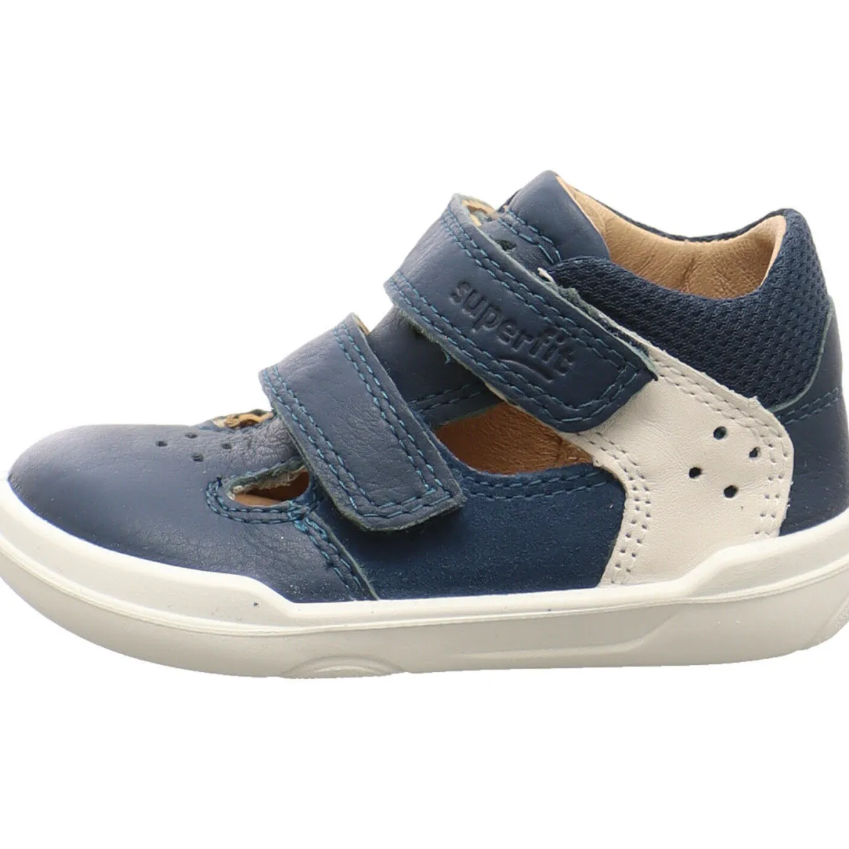Der Superfree ist ein toller Kinder Barfußschuh von Superfit. Er begeistert durch seine hochwertige Verarbeitung aus Echtleder in Blau. Der Schaft aus Textil Mesh ist angenehm weich und der Einsatz in Weiß, in Verbindung mit der Laufsohle geben ihm einen frischen Look. Mit dem doppelten Klettverschluss ist der Einstieg ganz einfach. Am Rist ist er mit Cutouts versehen die ihn besonders luftig machen. Er ist aus der Barefit Barfußlinie und durch seine besondere Leistenform und die dünne Sohle vermittelt er das Gefühl des Barfußlaufen.