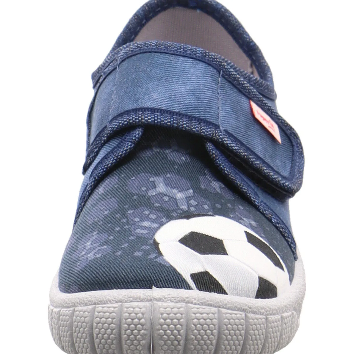 Der Bill ist ein toller Kinder Hausschuh von Superfit und begeistert jeden Jungen mit coolen Fußball Print und der Farbgebung in Denim Blau. Das strapazierfähige Material aus reiner Baumwolle macht diesen Hausschuh zu einem robusten und angenehm zu tragenden Begleiter für zu Hause oder im Kindergarten.