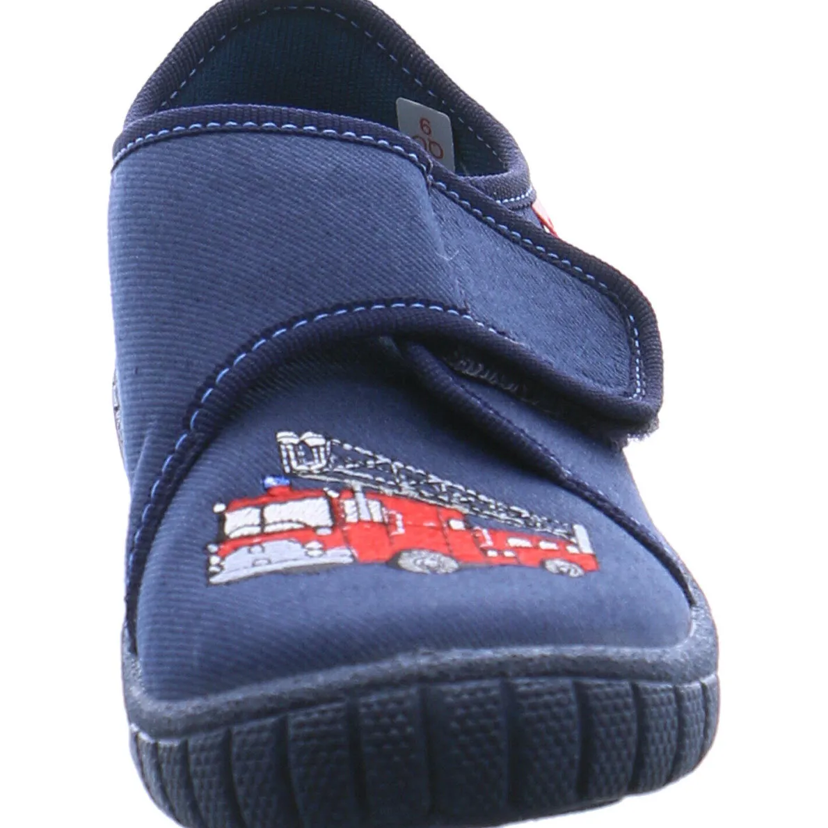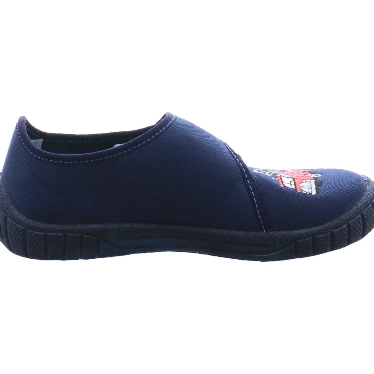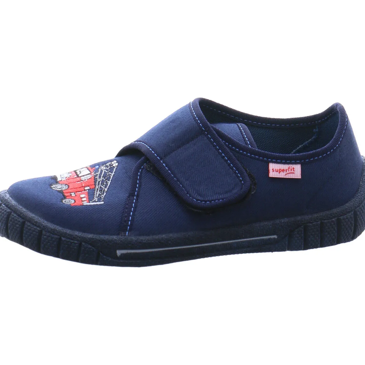 Der Bill ist ein toller Kinder Hausschuh von Superfit und begeistert jeden Jungen mit seiner coolen Feuerwehr Auto Stickerei und der Aufmachung in trendigem Blau. Das strapazierfähige Textil Material im Denim Look und das Innenfutter aus reiner Baumwolle macht diesen Hausschuh zu einem robusten und angenehm zu tragenden Begleiter für zu Hause oder im Kindergarten.