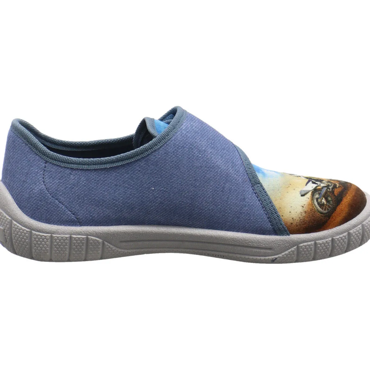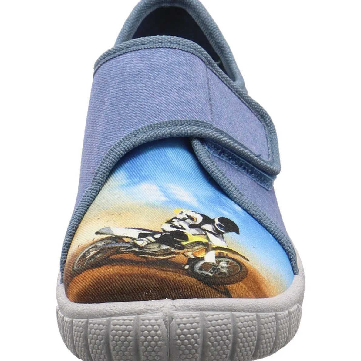 Der Bill ist ein toller Kinder Hausschuh von Superfit und begeistert jeden Jungen mit coolem Motocross Print und der Farbgebung in Blau. Das strapazierfähige Material aus reiner Baumwolle macht diesen Hausschuh zu einem robusten und angenehm zu tragenden Begleiter für zu Hause oder im Kindergarten.