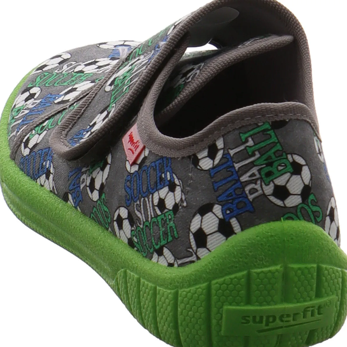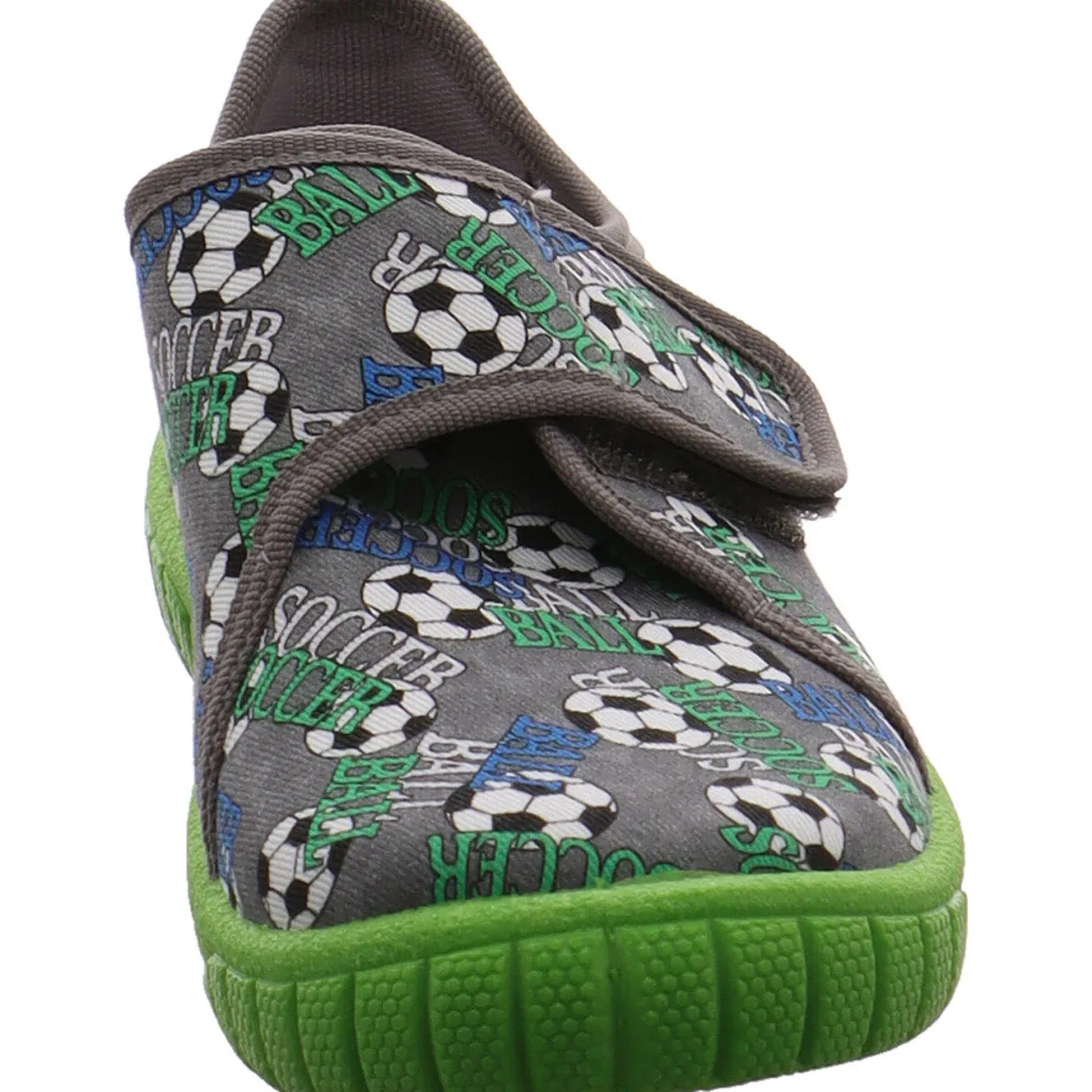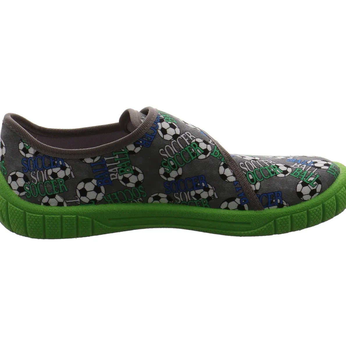 Der Bill ist ein toller Kinder Hausschuh von Superfit und begeistert jeden Jungen mit seinem tollen Fußball Print und der Aufmachung in trendigem Denim Grau mit Grün und Blau. Das strapazierfähige Textil Material und das Innenfutter aus reiner Baumwolle machen diesen Hausschuh zu einem robusten und angenehm zu tragenden Begleiter für zu Hause oder im Kindergarten.