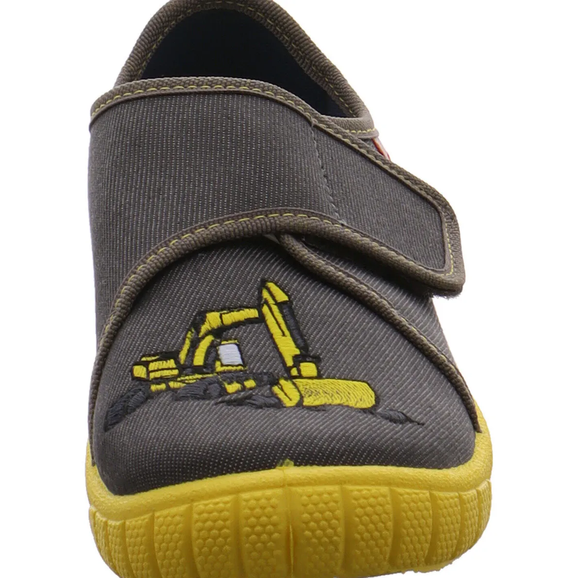 Der Bill ist ein toller Kinder Hausschuh von Superfit und begeistert jeden Jungen mit seiner coolen Bagger Stickerei und der Farbgebung in Grau in Denim Optik mit Ziernähten in Gelb. Das strapazierfähige Material aus reiner Baumwolle macht diesen Hausschuh zu einem robusten und angenehm zu tragenden Begleiter für zu Hause oder im Kindergarten.