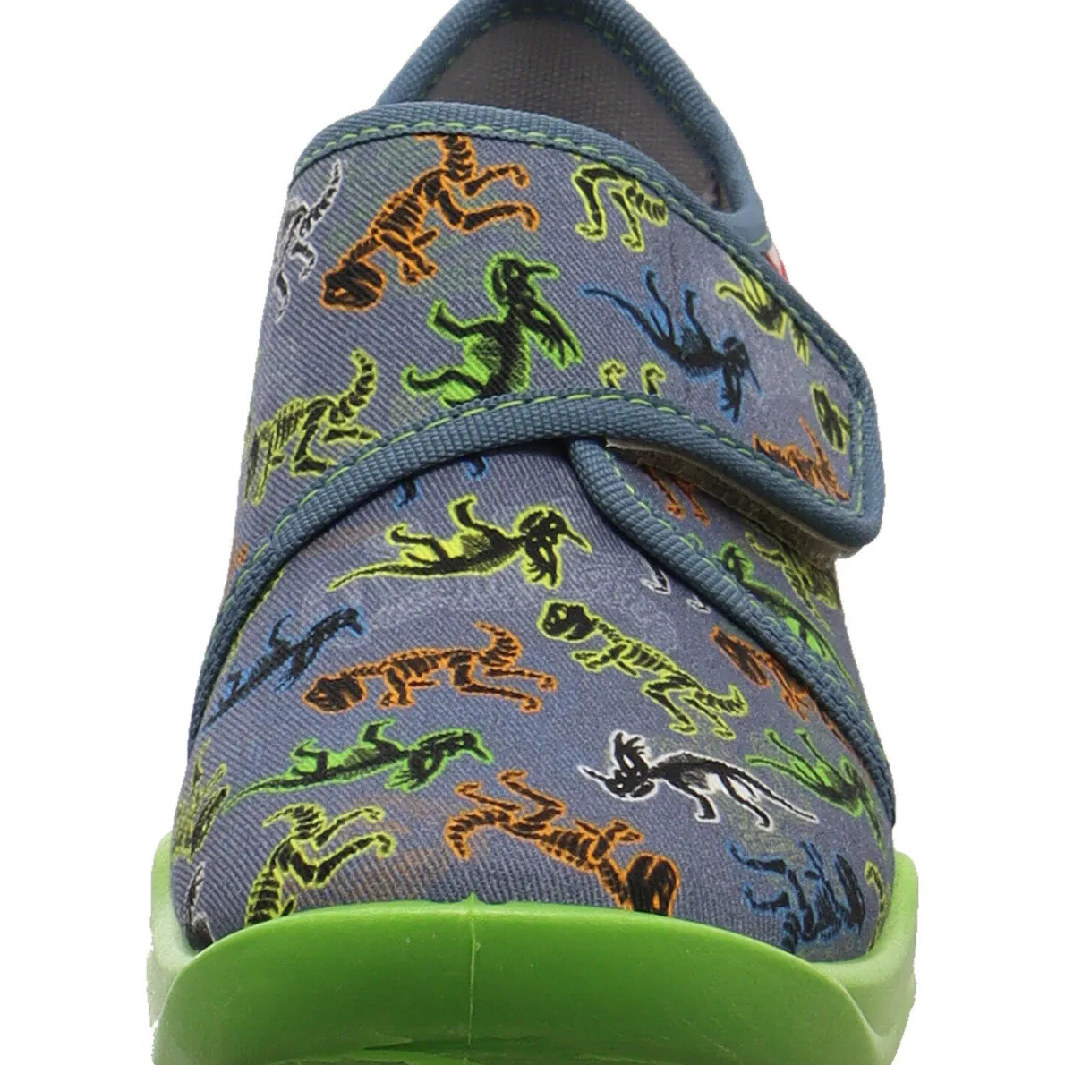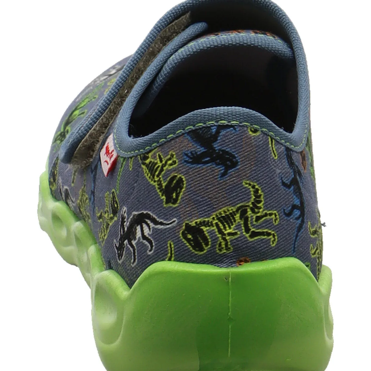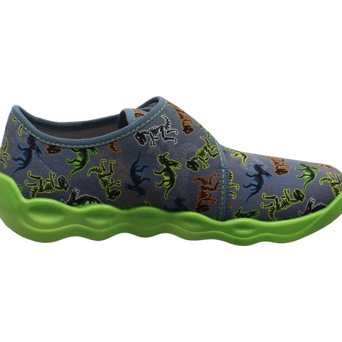Der Bubble ist ein toller Kinder Hausschuh von Superfit und begeistert jeden Jungen mit seinem tollen Dino Print in bunten Farben und der Aufmachung in trendigem Blau mit der farblich abgesetzten Laufsohle in Grün. Das strapazierfähige Textil Material macht diesen Hausschuh zu einem robusten und angenehm zu tragenden Begleiter für zu Hause oder im Kindergarten.