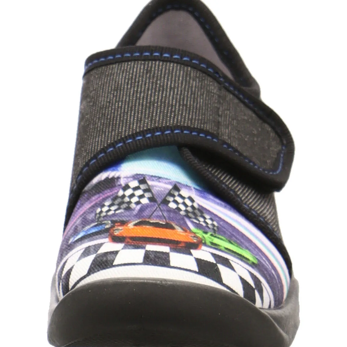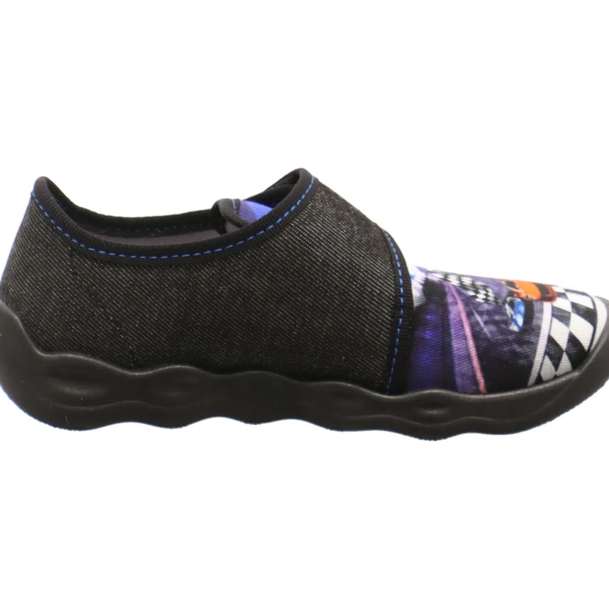 Der Bubble ist ein toller Kinder Hausschuh von Superfit und begeistert jeden Jungen mit seinem coolen Rennfahrer Print und der Aufmachung in trendigem Schwarz. Die Laufsohle ist ebenfalls in Schwarz gehalten, was das Deisgn gekonnt abrundet.