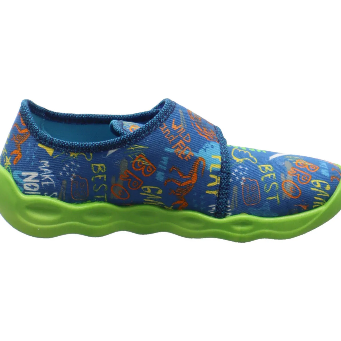 Der Bubble ist ein toller Kinder Hausschuh von Superfit und begeistert jeden Jungen mit seinem tollen Aufdruck in bunten Farben und der Aufmachung in trendigem Blau mit der farblich abgesetzten Laufsohle in Grün. Das strapazierfähige Textil Material macht diesen Hausschuh zu einem robusten und angenehm zu tragenden Begleiter für zu Hause oder im Kindergarten.