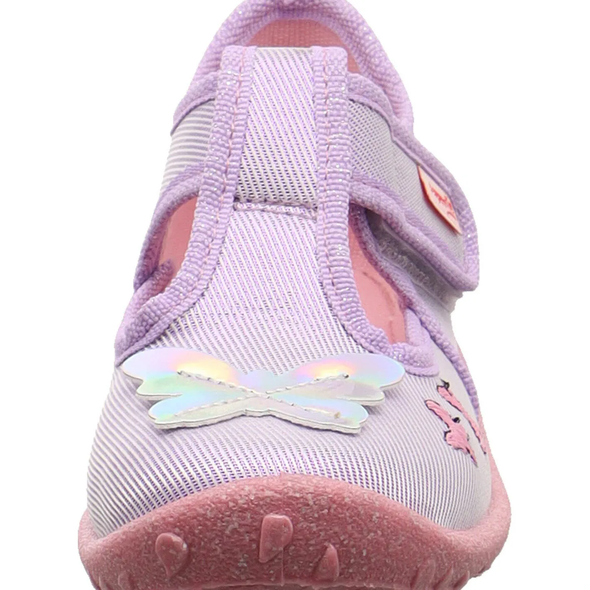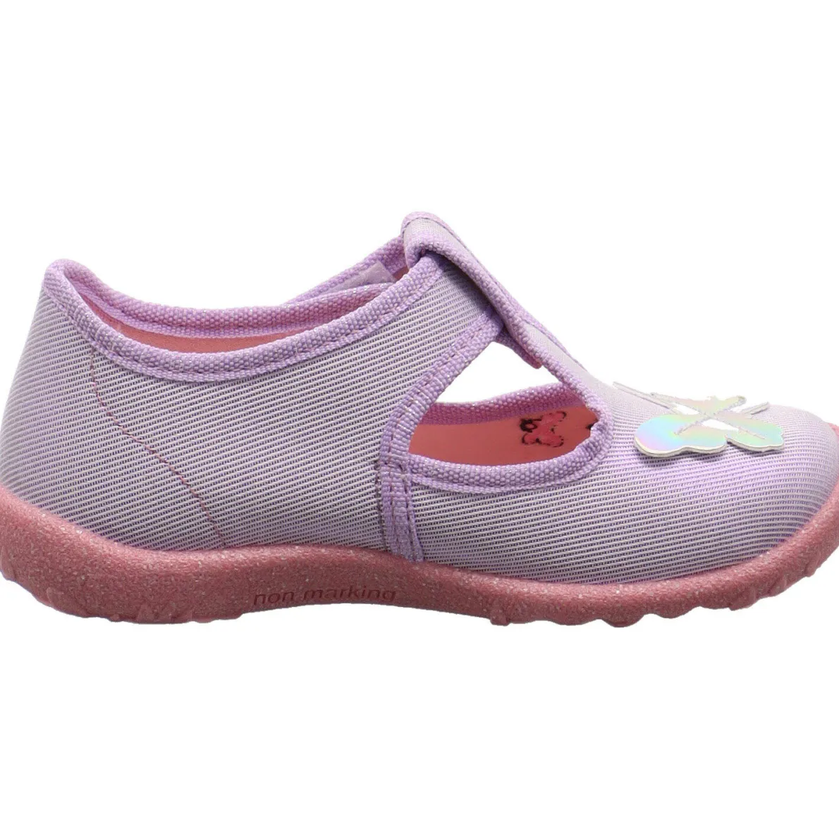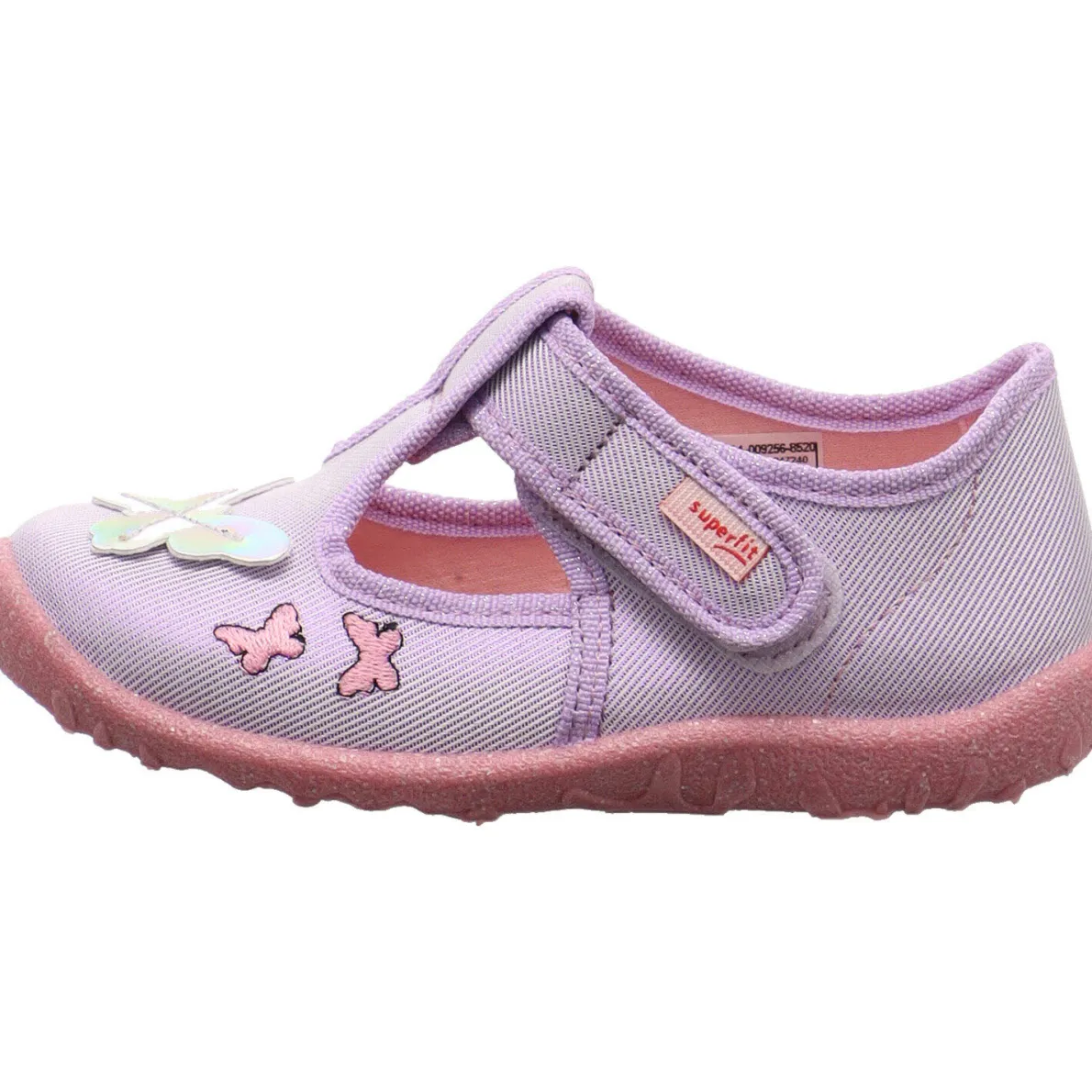 Dieser süße Kinder Hausschuh Spotty in Lila von Superfit begeistert alle kleinen Mädchen mit seinem niedlichen Look. Das strapazierfähige Material aus Textil ziert ein kleiner schimmernder Schmetterling auf dem Blatt und macht den Schuh zu einem absoluten Hingucker. Der Klettverschluss ermöglicht ein leichten An- und Ausziehen und gibt zusätzlich Halt.