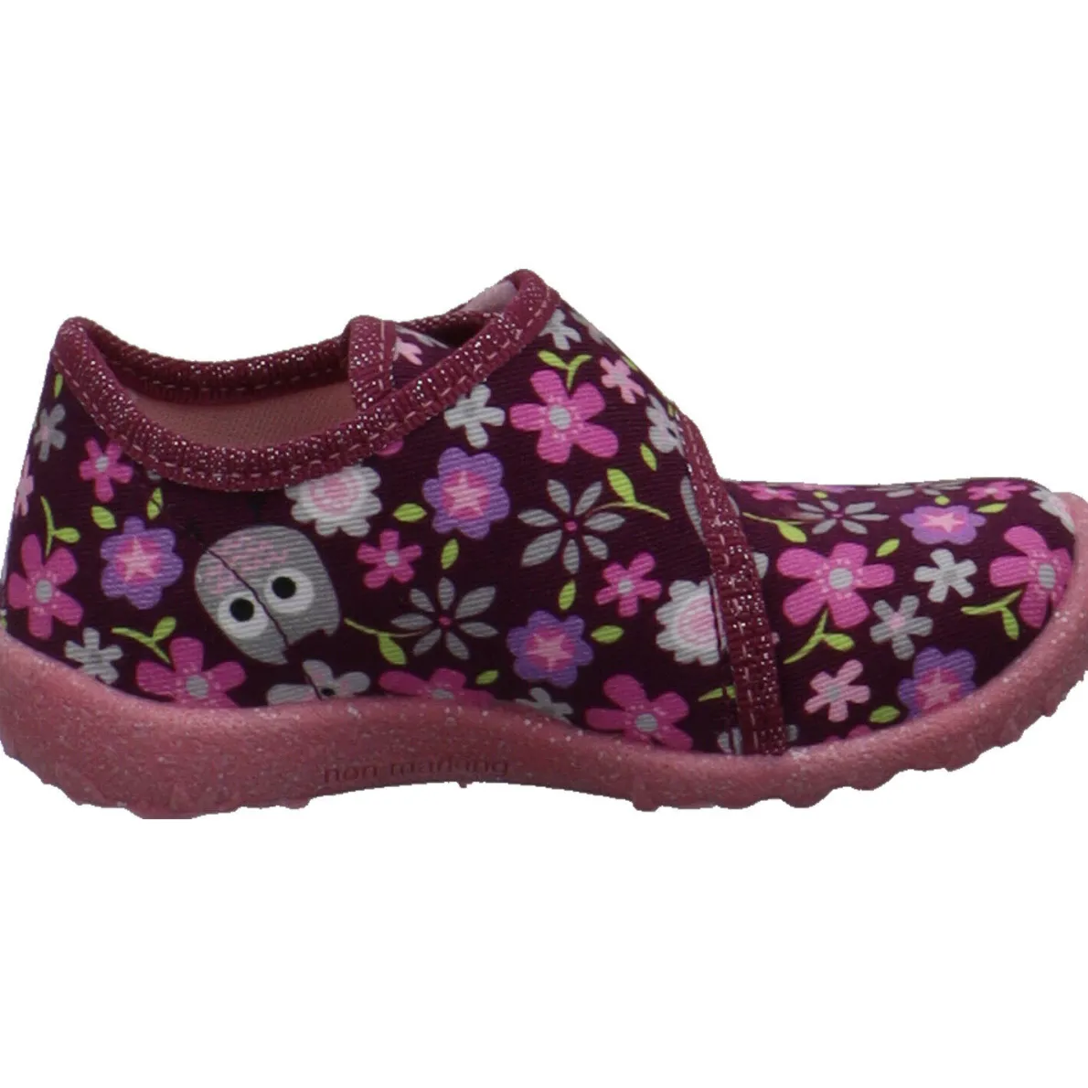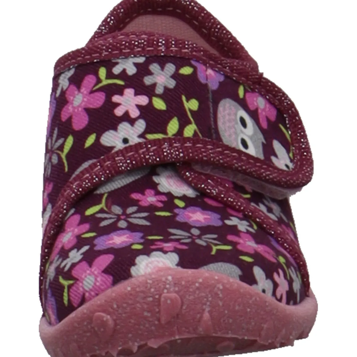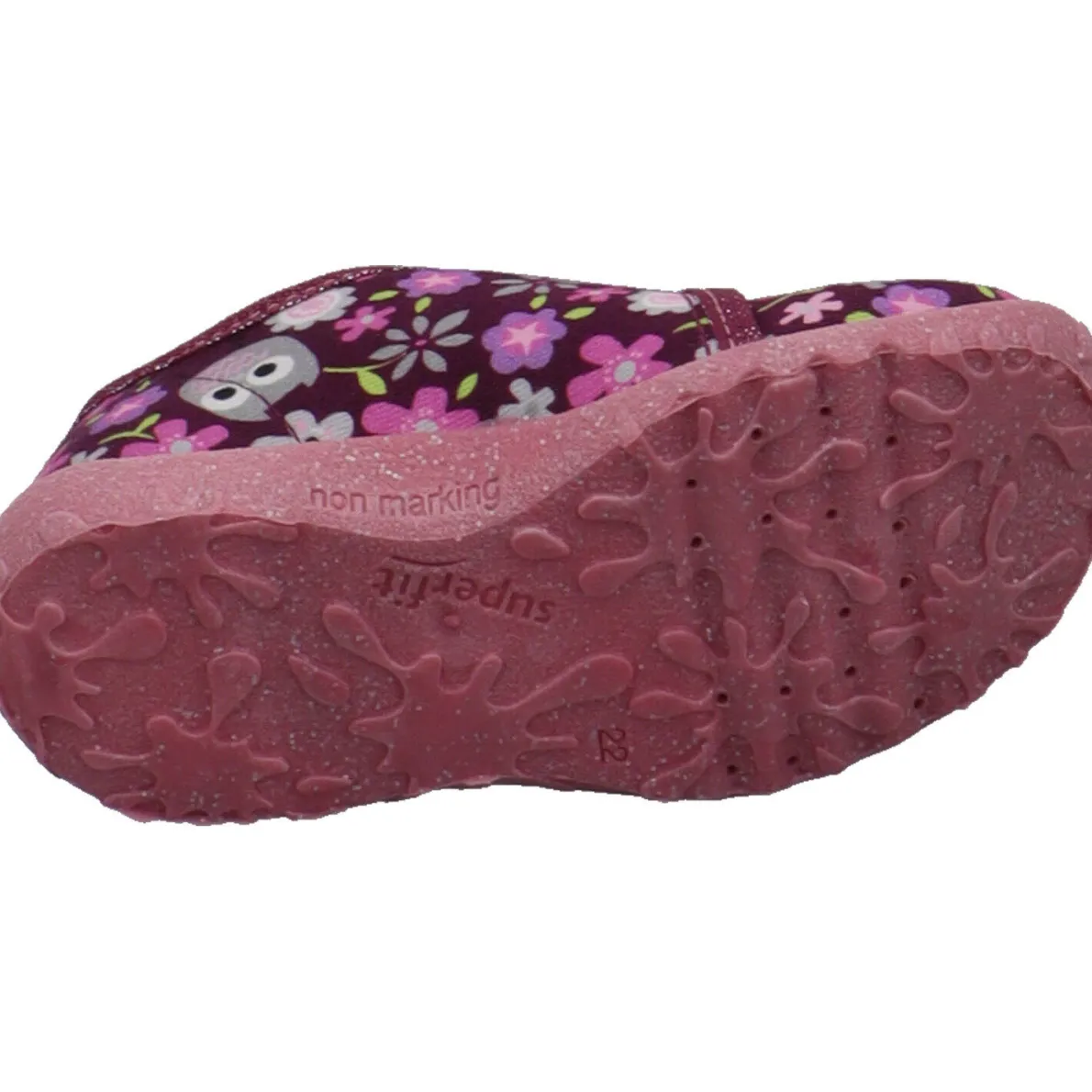 Dieser süße Kinder Hausschuh Spotty von der Marke Superfit ist perfekt für kleine Mädchen. Er hat einen Bunten Print mit Blumen und einer Eule. Das strapazierfähige Material aus Textil in Rot und die textile Innenausstattung in Rosa machen diesen Hausschuh perfekt für Zuhause und im Kindergarten. Der Klettverschluss ermöglicht ein leichtes An- und Ausziehen, die flexible non marking Laufsohle mit der Perforierung ist atmungsaktiv, damit dein Kind in dem Hausschuh nicht ins schwitzen kommt.