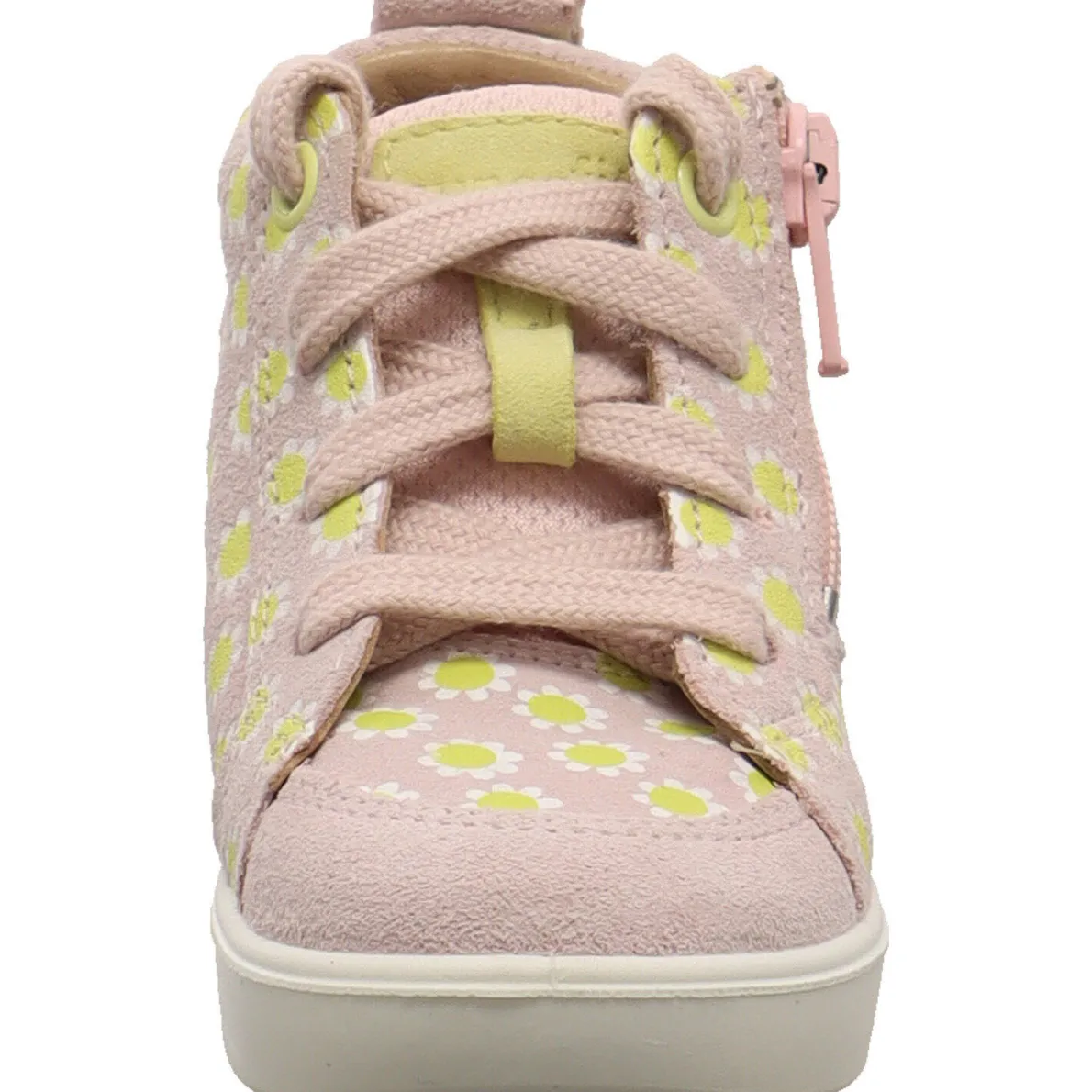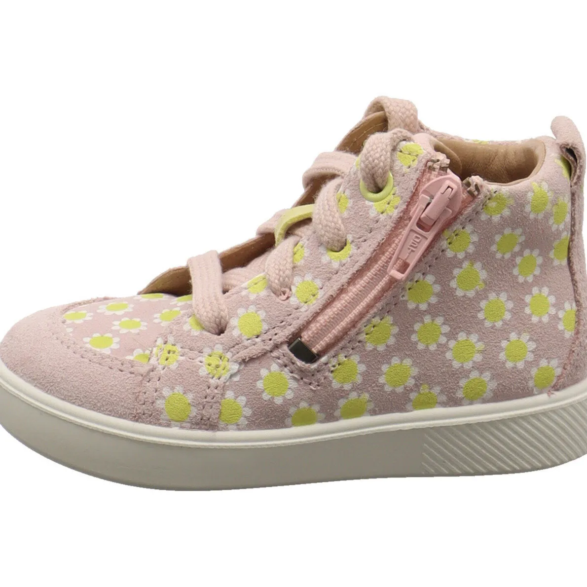 Er wurde aus einem tollen Mix aus hochwertigem Echtleder und Textil in Pastell Rosa gefertigt und ist mit einem Blumen Print in Gelb verziert. Der seitliche Reißverschluss macht den Einstieg kinderleicht und mit der Schnürung kann er genau an den kleinen Fuß angepasst werden. Die Innensohle ist natürlich als Wechselfußbett gearbeitet, damit du die optimale Größe ermitteln kannst. Der Schuh für Mädchen ist super leicht und flexibel und genau das richtige für die Bedürfnisse kleiner Füße.