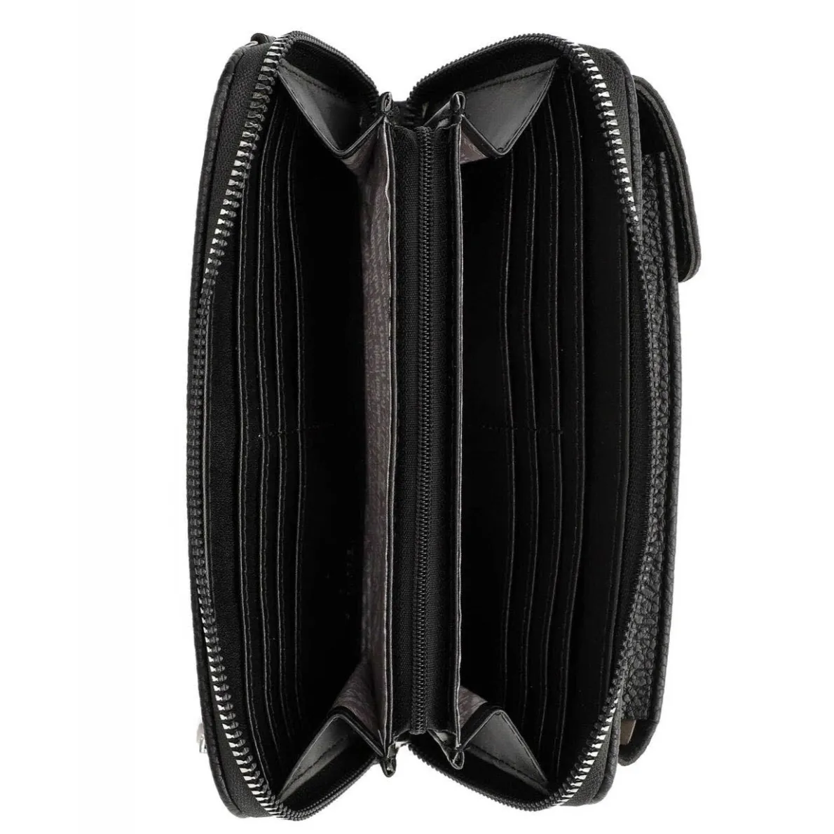 Sie wurde aus pflegeleichtem Kunstleder in Schwarz gefertigt und ist mit einem geräumigen Außenfach ausgestattet, welches Platz für ein Handy bietet.