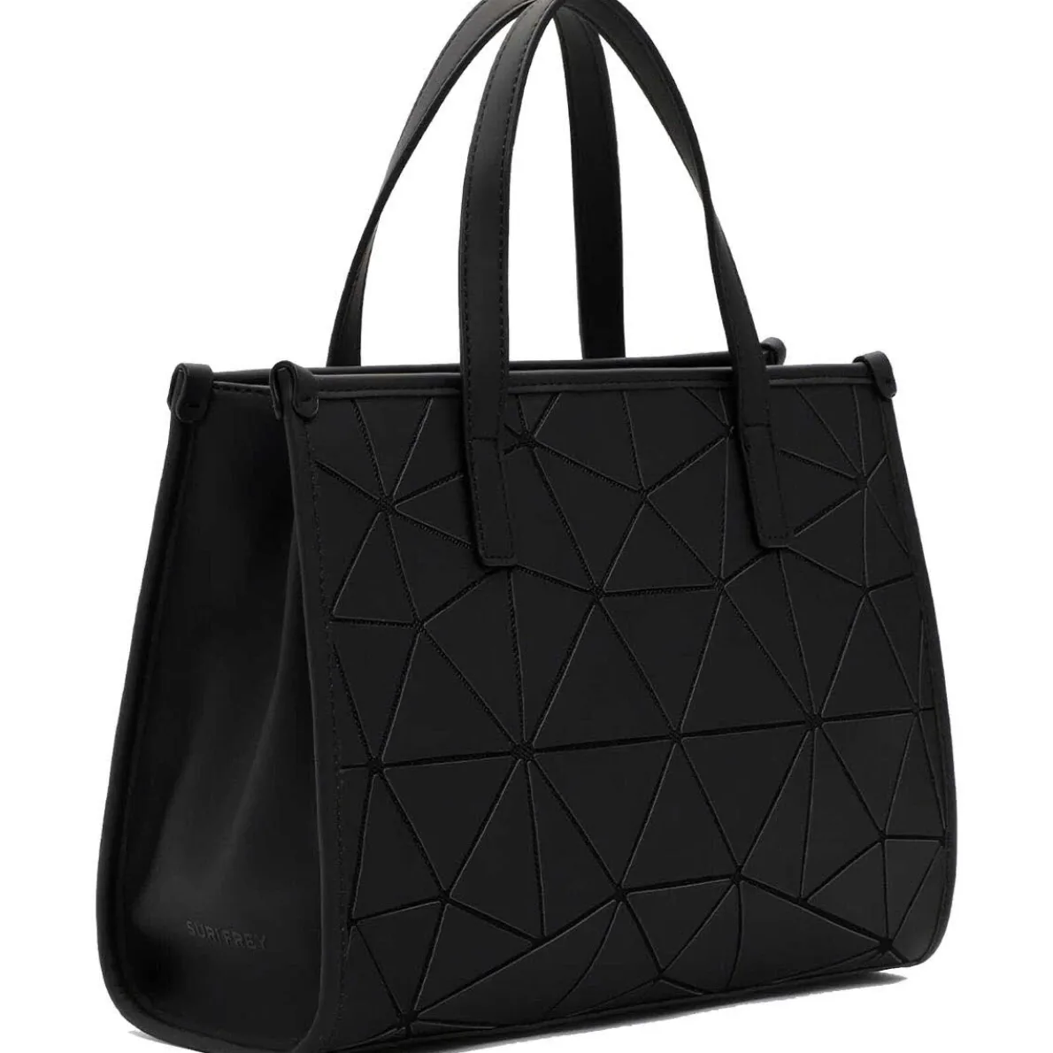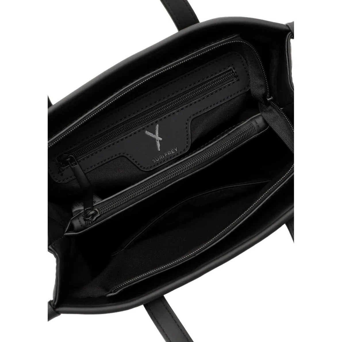 Die Suri Sports Jessy-Lu ist eine Damen Henkeltasche von Suri Frey aus hochwertigem Kunstleder in Schwarz. Das Obermaterial erhält durch das geometrische Muster eine stylische Mix-Optik und macht den Shopper zum absoluten Hingucker.