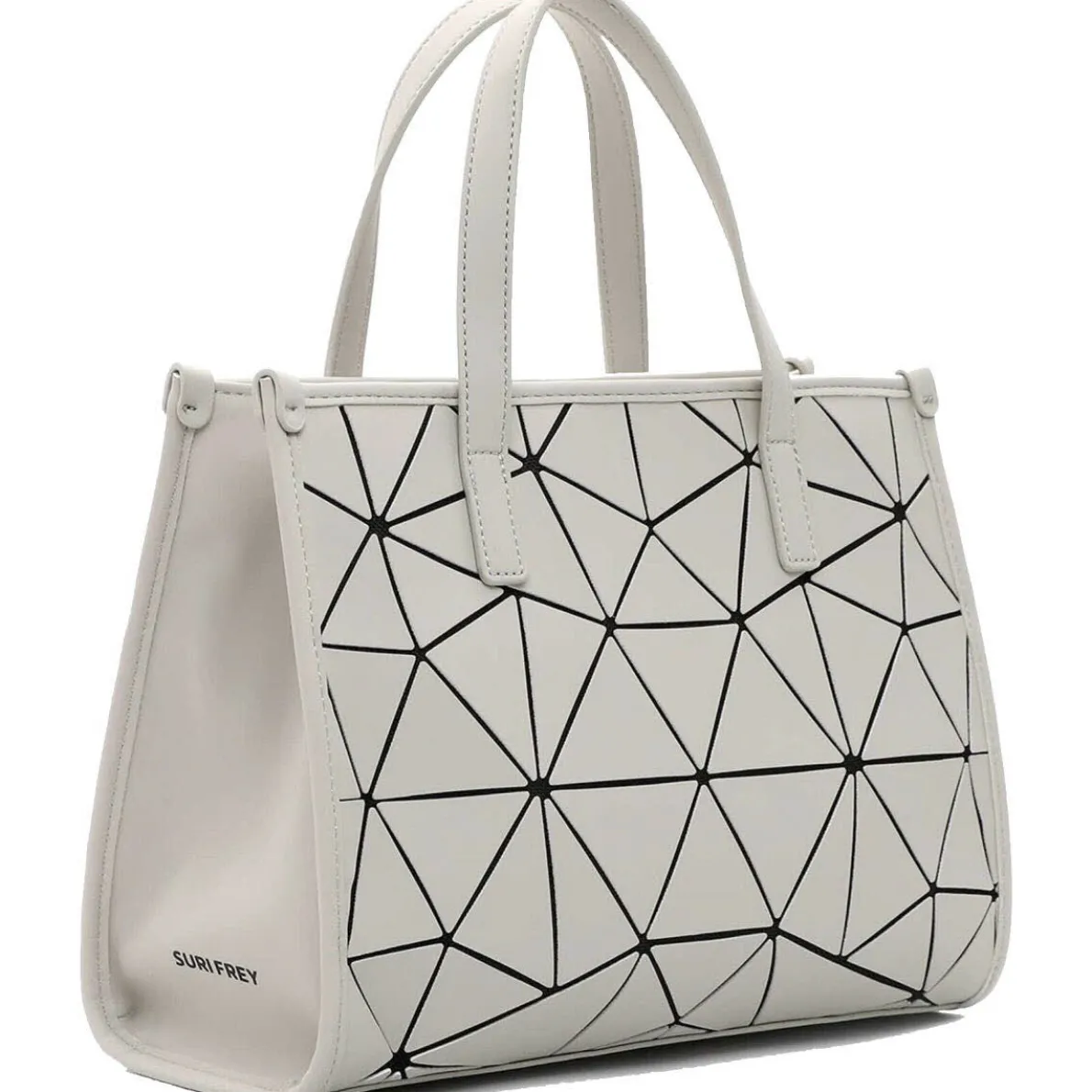 Die Suri Sports Jessy-Lu ist eine Damen Henkeltasche von Suri Frey aus hochwertigem Kunstleder in Ecru Beige. Das Obermaterial erhält durch das geometrische Muster eine stylische Mix-Optik und macht den Shopper zum absoluten Hingucker.