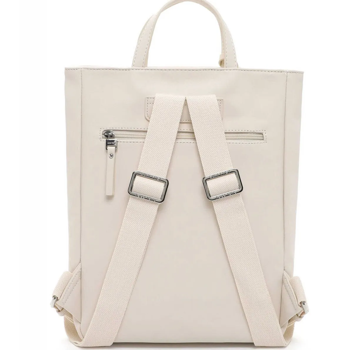 Ein optisches Highlight ist das Obermaterial mit Steppstich-Optik in Beige, welches den Rucksack zum absoluten Hingucker macht.