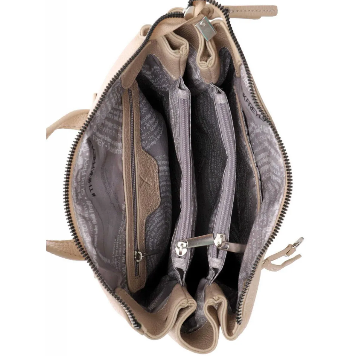 3 geteiltes Hauptfach wird mit Reißverschluss geschlossen