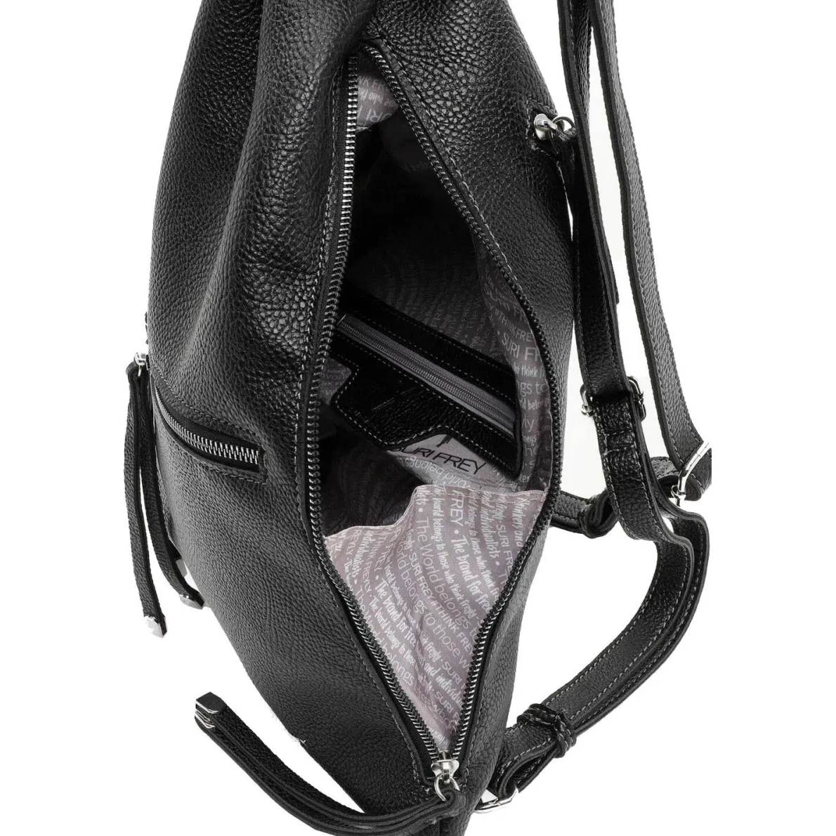 Der Freddy von Suri Frey ist ein ausgesprochen praktischer Damen City Rucksack aus Kunstleder, in dem du all deine Errungenschaften ordentlich verstauen kannst.
