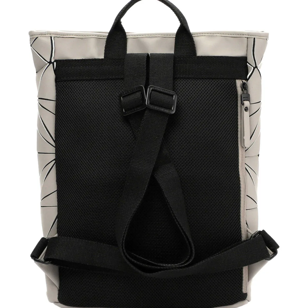 Das Obermaterial erhält durch das Geometrische Muster in Taupe Beige eine stylische Mix-Optik und macht den Rucksack zum absoluten Hingucker.