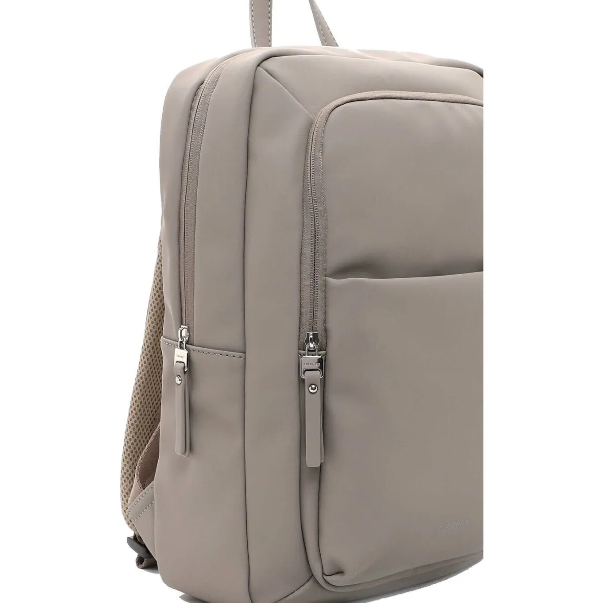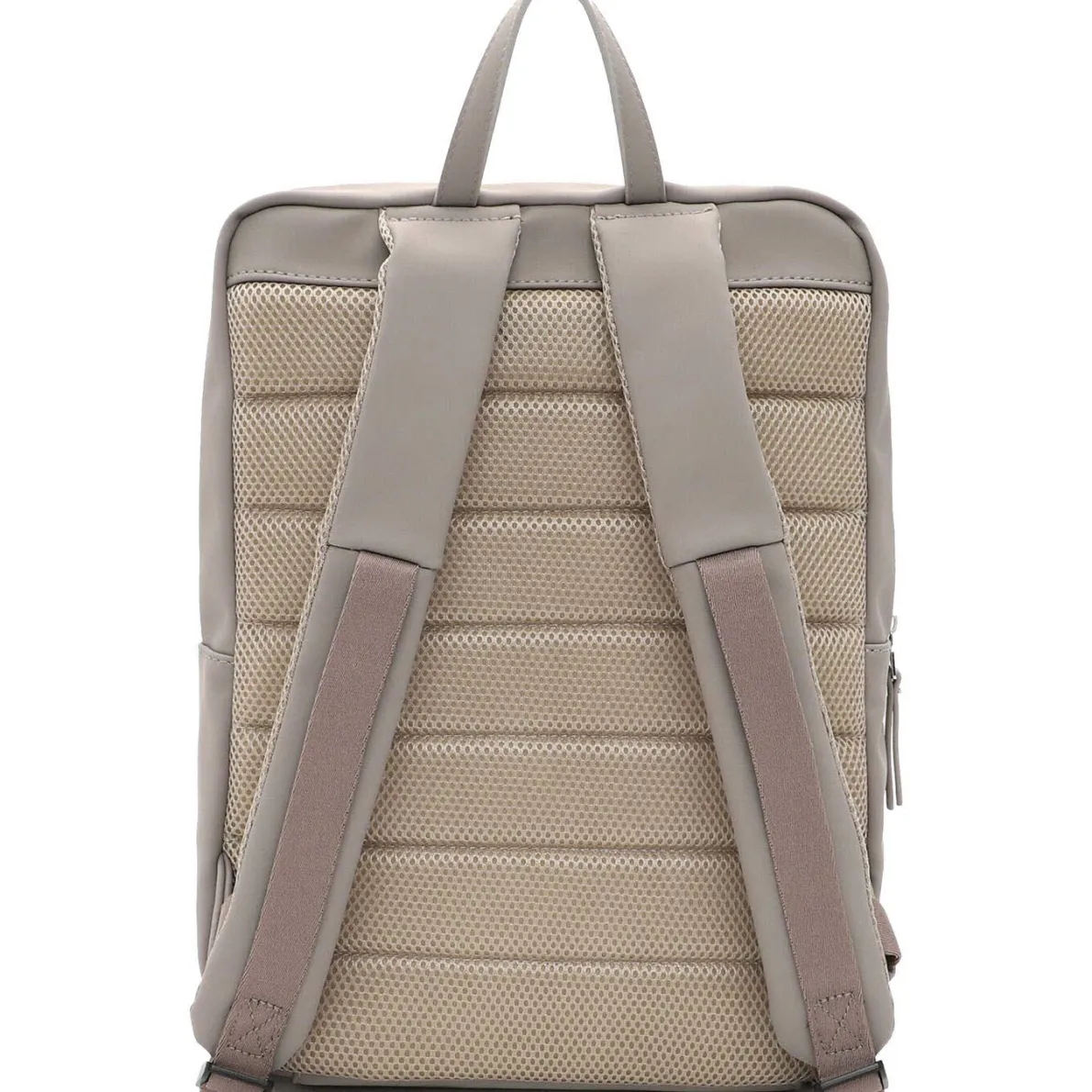 Das Obermaterial besteht aus hochwertig verarbeitetem Kunstleder in Taupe Grau und ist durch seine Haptik besonders anschmiegsam. Die glatte Optik und das Uni-Design sind fein gearbeitet und verleihen dem Rucksack einen edlen Look.