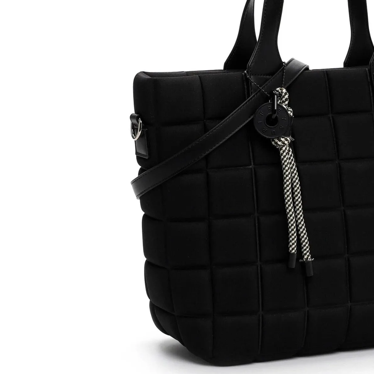 Ausgefallen gestaltetes Obermaterial aus Textil in Schwarz wurde mit einer angesagten Polsterung und einer angenehmen Haptik versehen, die der Handtasche das gewisse Etwas verleihen. Durch den verstellbaren und abnehmbaren Umhängegurt kannst du die Tasche auch crossover tragen.