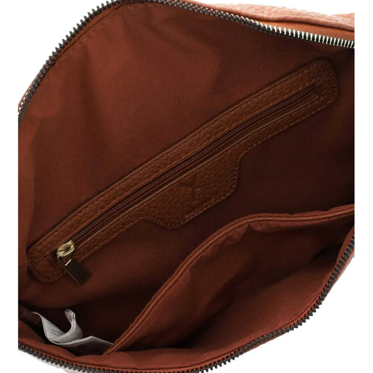 Edel verarbeitetes Kunstleder in Cognac Braun wurde mit einer angenehmen Haptik versehen, die der Umhängetasche das gewisse Etwas verleiht. Durch den verstellbaren und abnehmbaren Umhängegurt mit angesagtem Muster kannst du die Tasche auch crossover tragen.