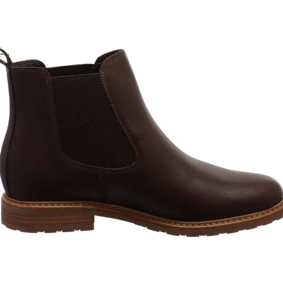 Dieser schicke Tamaris Damen Chelsea Boots überzeugt durch sein hochwertiges Obermaterial aus Glattleder in Braun.