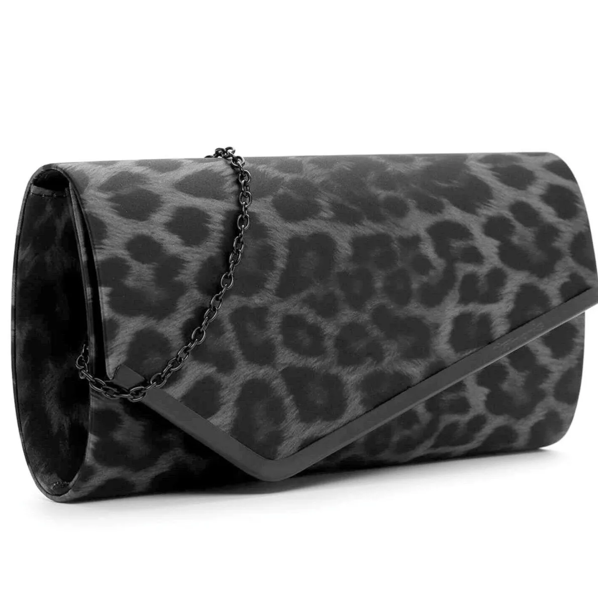 Das hochwertige und anschmiegsame Obermaterial aus Polyester begeistert mit einem angesagten Leomuster und gibt der Abendtasche noch den letzten Schliff. Durch die stilvolle und abnehmbare Kette kann die Damen Handtasche auch über der Schulter getragen werden. In dem kleinen Hauptfach findet das Notwendigste für den Abend Platz.
