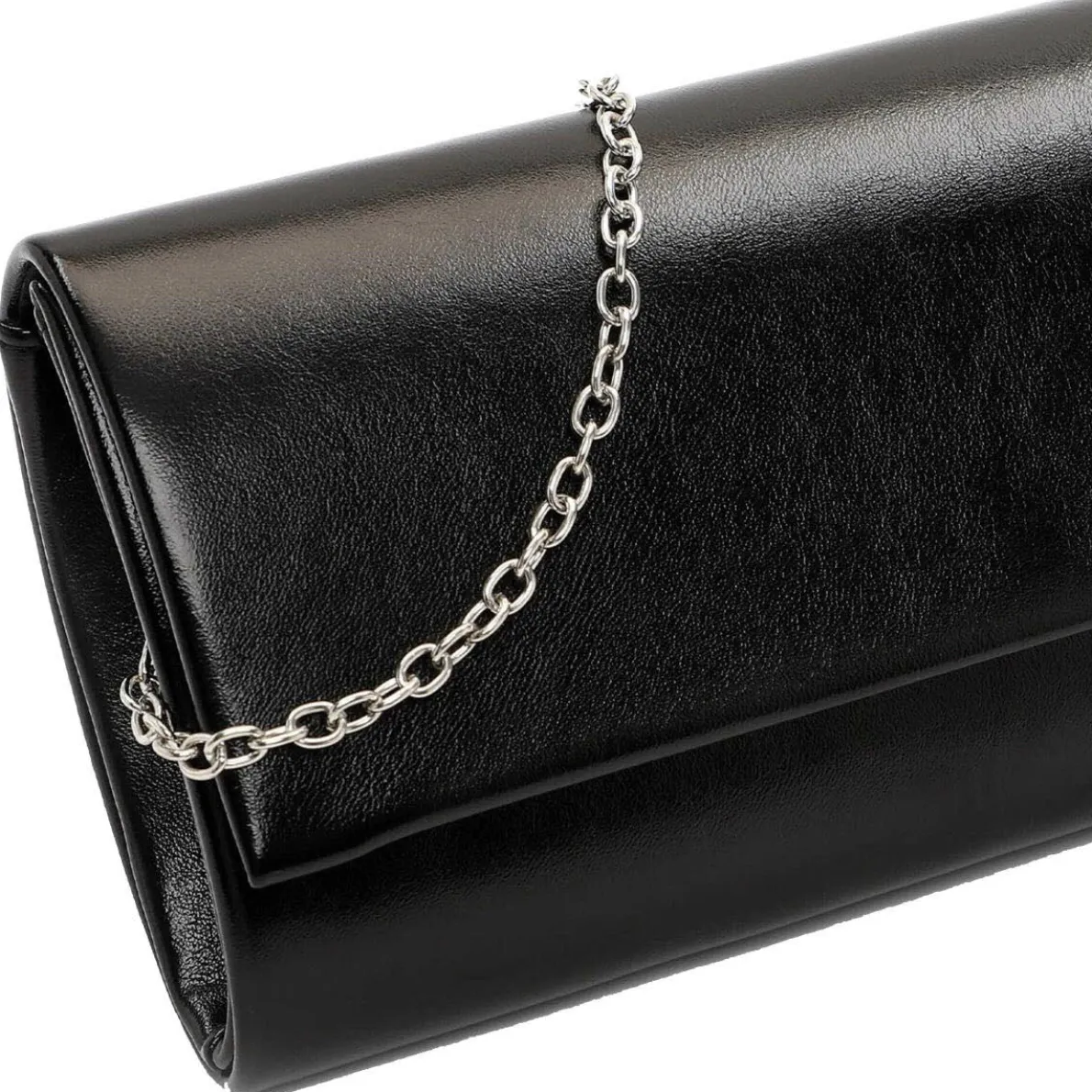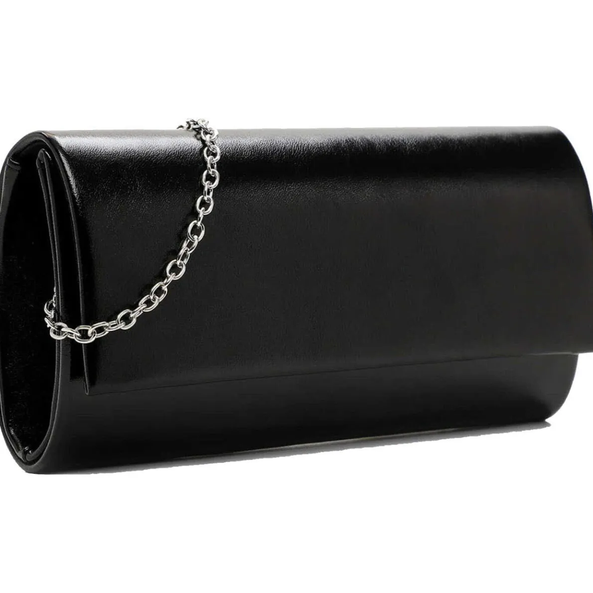 Das hochwertige und anschmiegsame Obermaterial aus Kunstleder in Schwarz in Lack-Optik gibt der Abendtasche den letzten Schliff. Durch die stilvolle und abnehmbare Kette kann die Damen Handtasche auch über der Schulter getragen werden. In dem kleinen Hauptfach findet das Notwendigste für den Abend Platz.